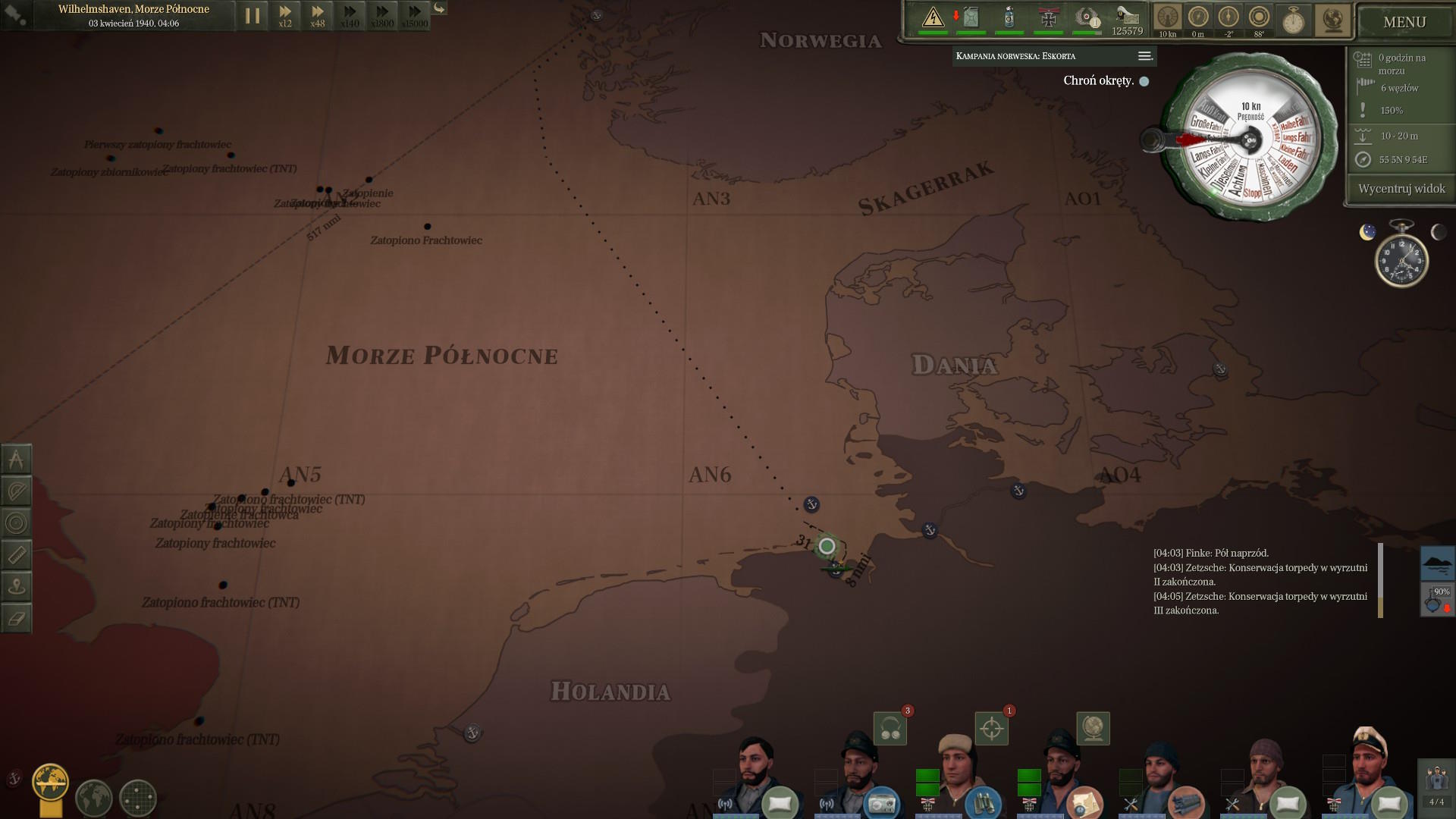 Jest 6 sierpnia 1940 roku. Odkąd 31 lipca opuściliśmy Wilhelmshaven kierujemy się coraz dalej na północ. Nawet dowództwo nie jest pewne, czy na pewno to był dobry pomysł. Zapytali nas o stan paliwa. Chwilowo wygląda to dobrze. Pokonaliśmy ponad 1300 mil, zużywając około czwartej części paliwa. Powinno nam go wystarczy do wyspy Hopen i z powrotem
