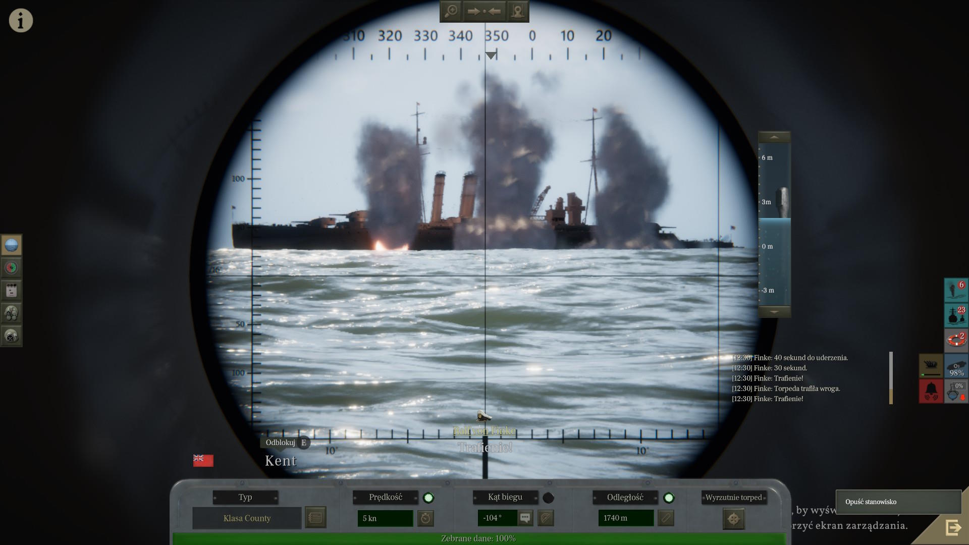 Wystrzeliliśmy do niego 3 torpedy, które trafiły okręt na całej długości