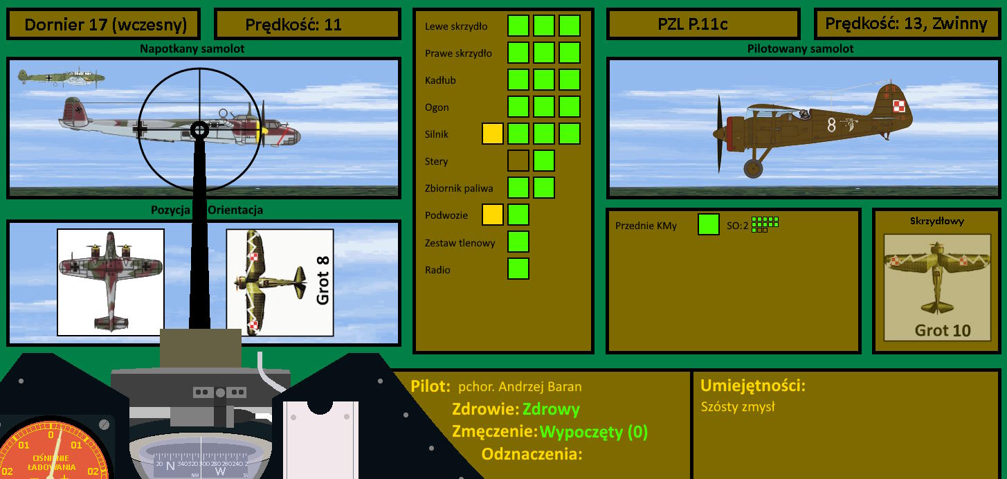 Andrzej brał na celownik jeden z bombowców, gdy naprzeciw niego poleciały pociski strzelców. Każdy z bombowców miał sprzężone karabiny maszynowe, którymi prowadzono ogień do zbliżających się samolotów, ale to polskie myśliwce miały przewagę sytuacji... szkoda tylko, że nie ognia. W tej sytuacji Andrzej wolałby, aby na skrzydłach były dodatkowe karabiny... i momentalnie zmienił zdanie.