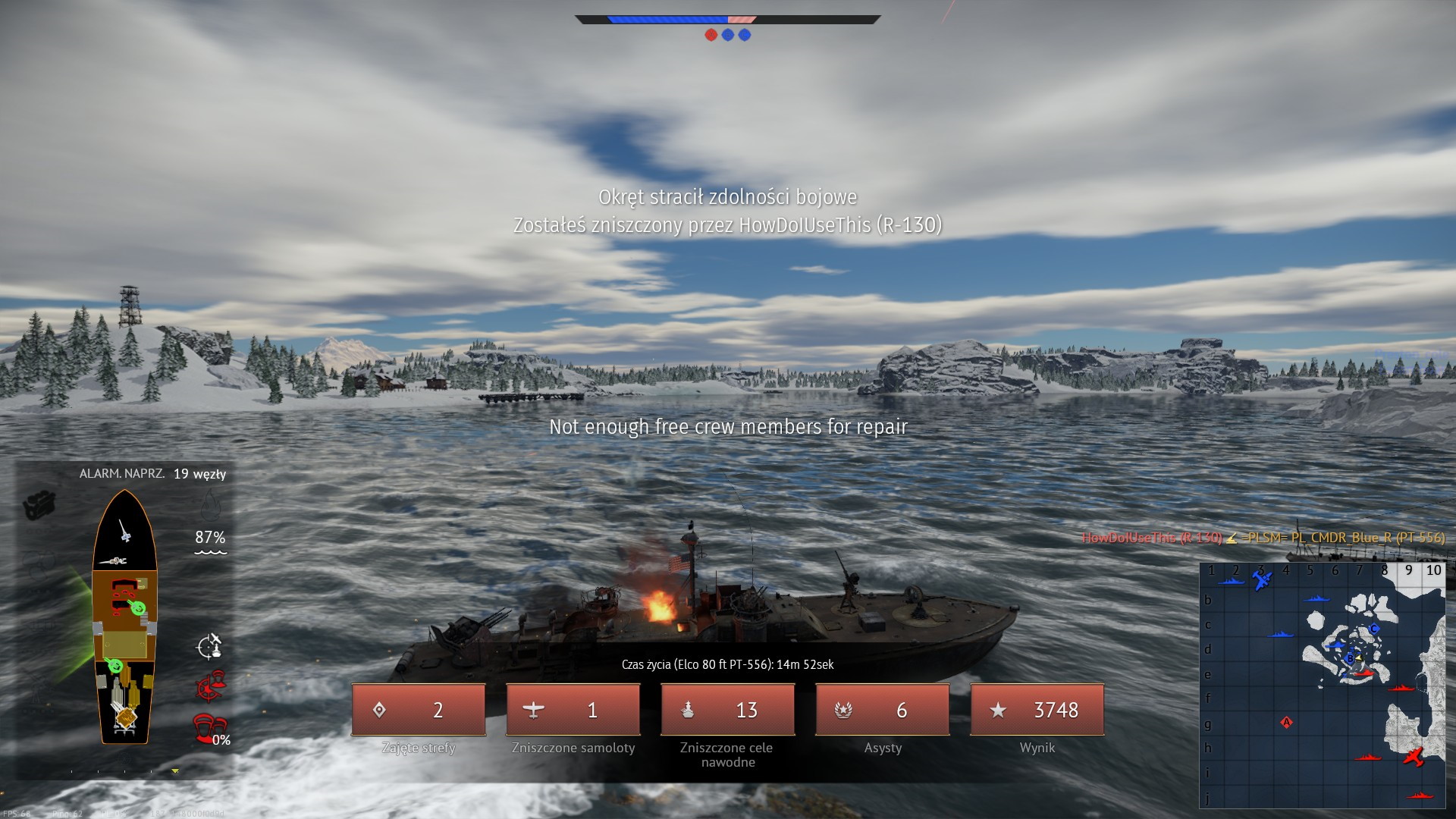Oczywiście, wracam, aby zobaczyć, że właśnie okręt zalewa woda i już nie zdołałem go naprawić... Ale zajął strefę XD I zdobył asystę! XDXD