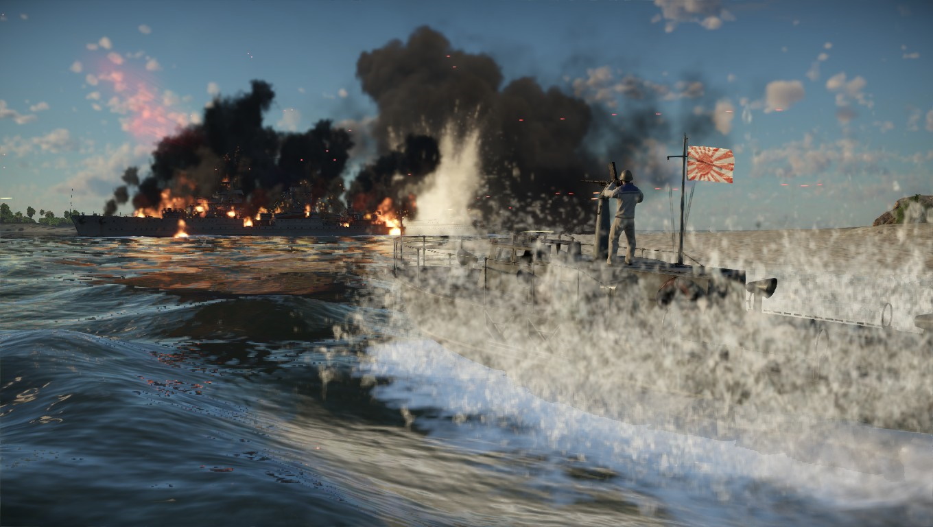 Oglądając za sobą efekt trafienia, gdy torpeda wysadziła wrogą amunicję