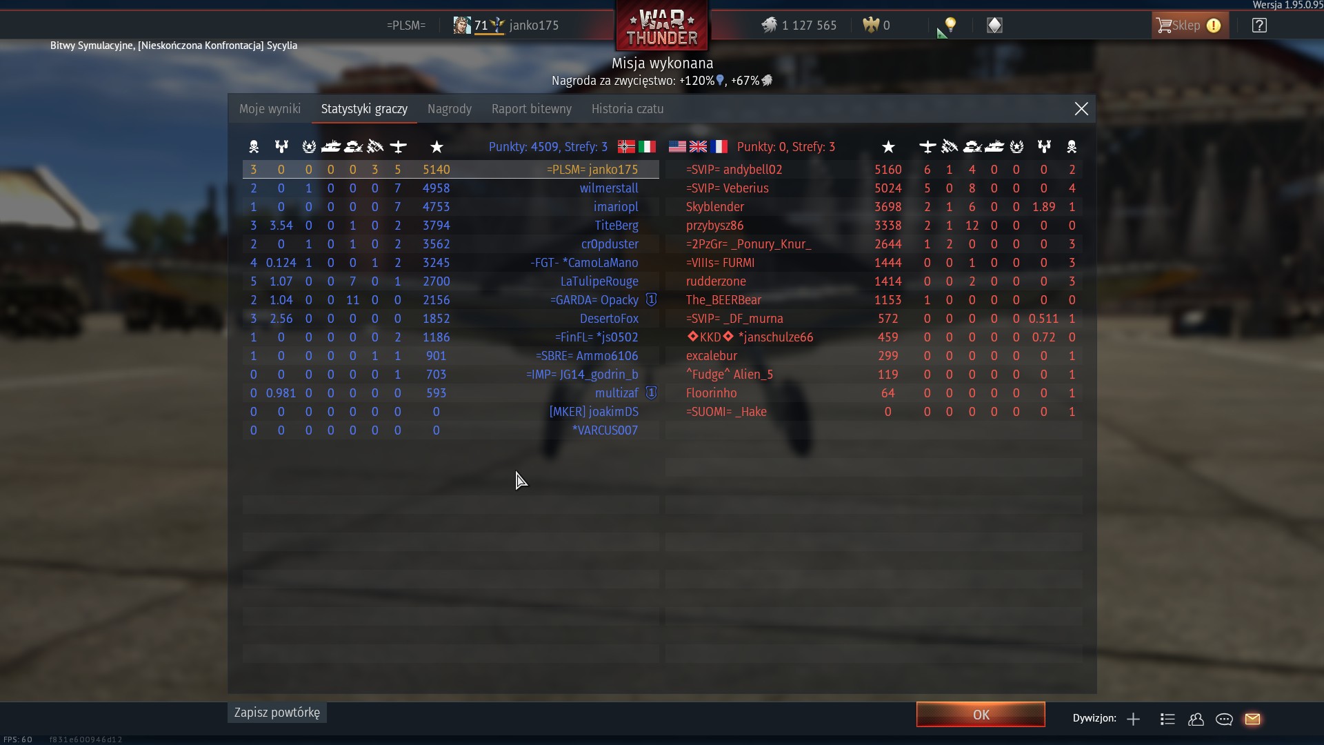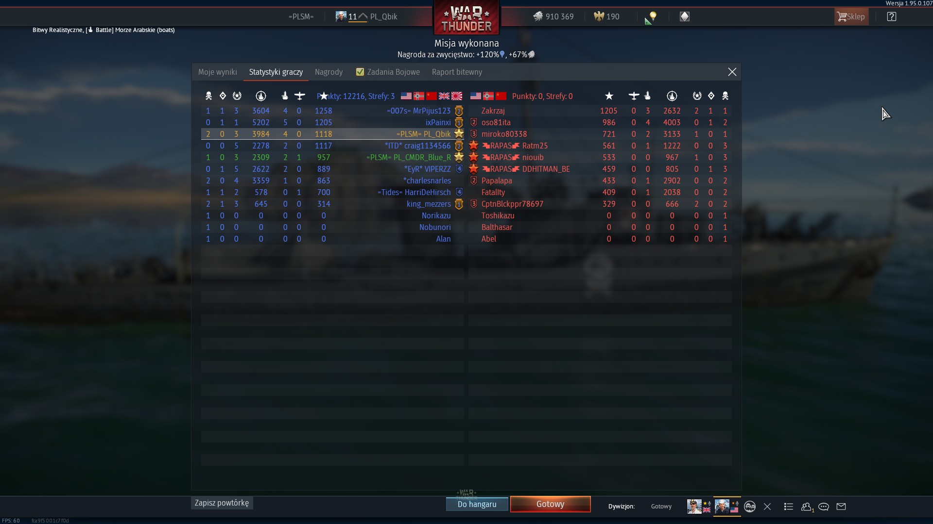 Przed chwilą sprawdziłem, z naszej wczorajszej/dzisiejszej wspólnej bitwy mam powtórkę ok 80 min. ale bez tabeli wyników.