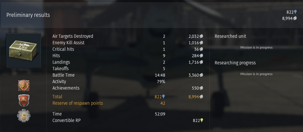 Czas bitwy - czas jaki spędziłem w tej jednej bitwie - od wejścia do niej do jej zakończenia. Słownie - dwie godziny, 41 minut. Bitwa w Enduring Confrontation trwa maksymalnie 3 godziny. Może zakończyć się wcześniej i tak bywa często, jeżeli jedna z drużyn zdobędzie 150 tys. punktów. Punkty przyznawane są za aktywność wszystkich graczy team'u - zestrzelenia graczy, AI'ków, zwiadowczych AI przeciwnej drużyny, zniszczenie naziemek (czołgi, haubice), niszczenie baz, obrona własnych i niszczenie obcych samolotów szturmowych itp.