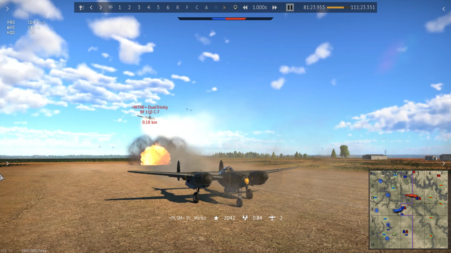 Przeciwnik rozbija się, mnie gra przydziela fraga - 10 sek. wstecz trafiłem go.