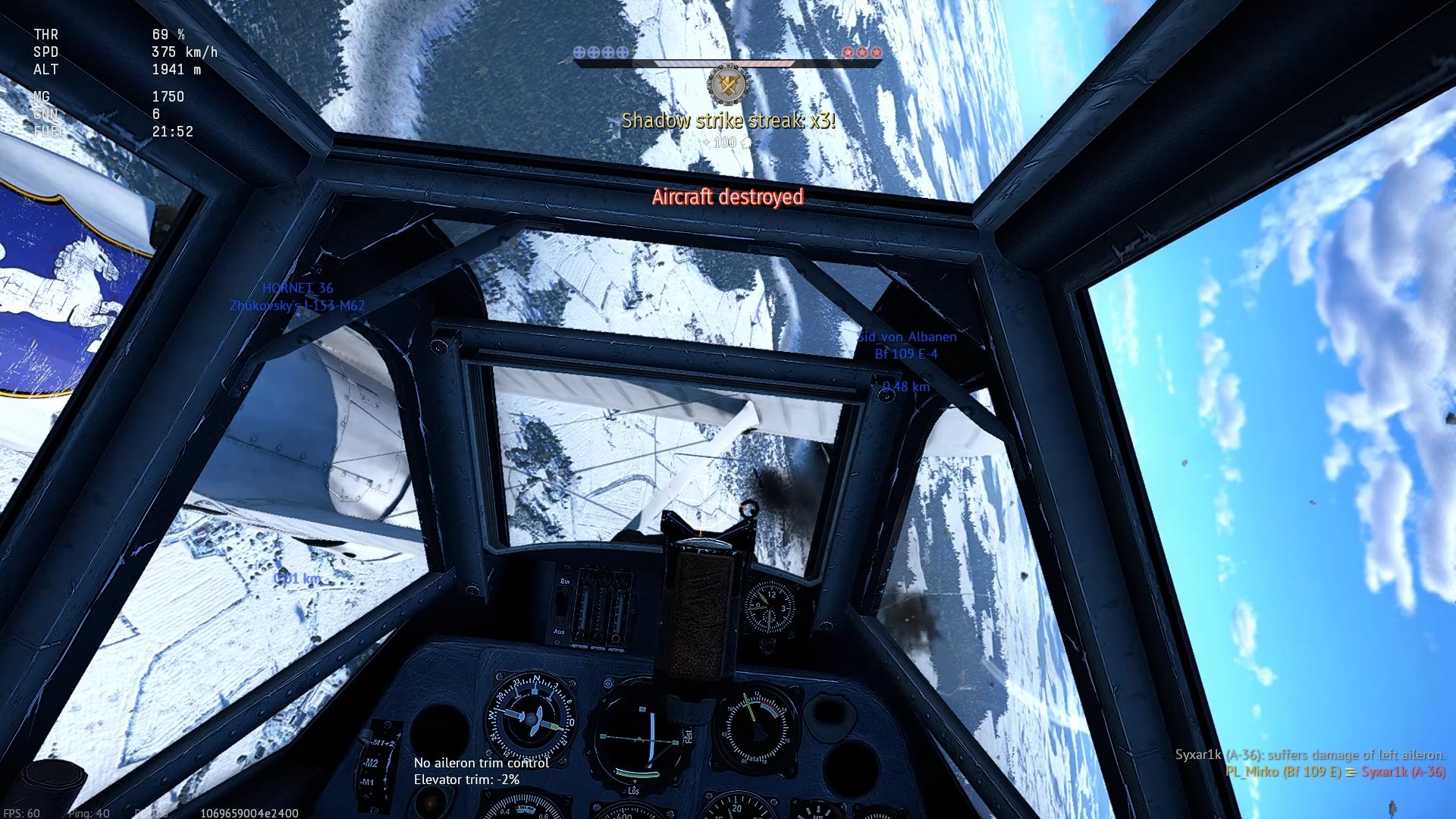 I jak zwykle zgubna chwila odprężenia po zwycięstwie - zostaję trafiony, odcięta końcówka skrzydła + lotka.
