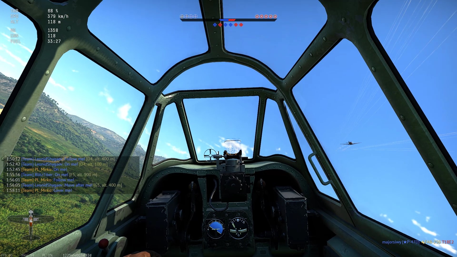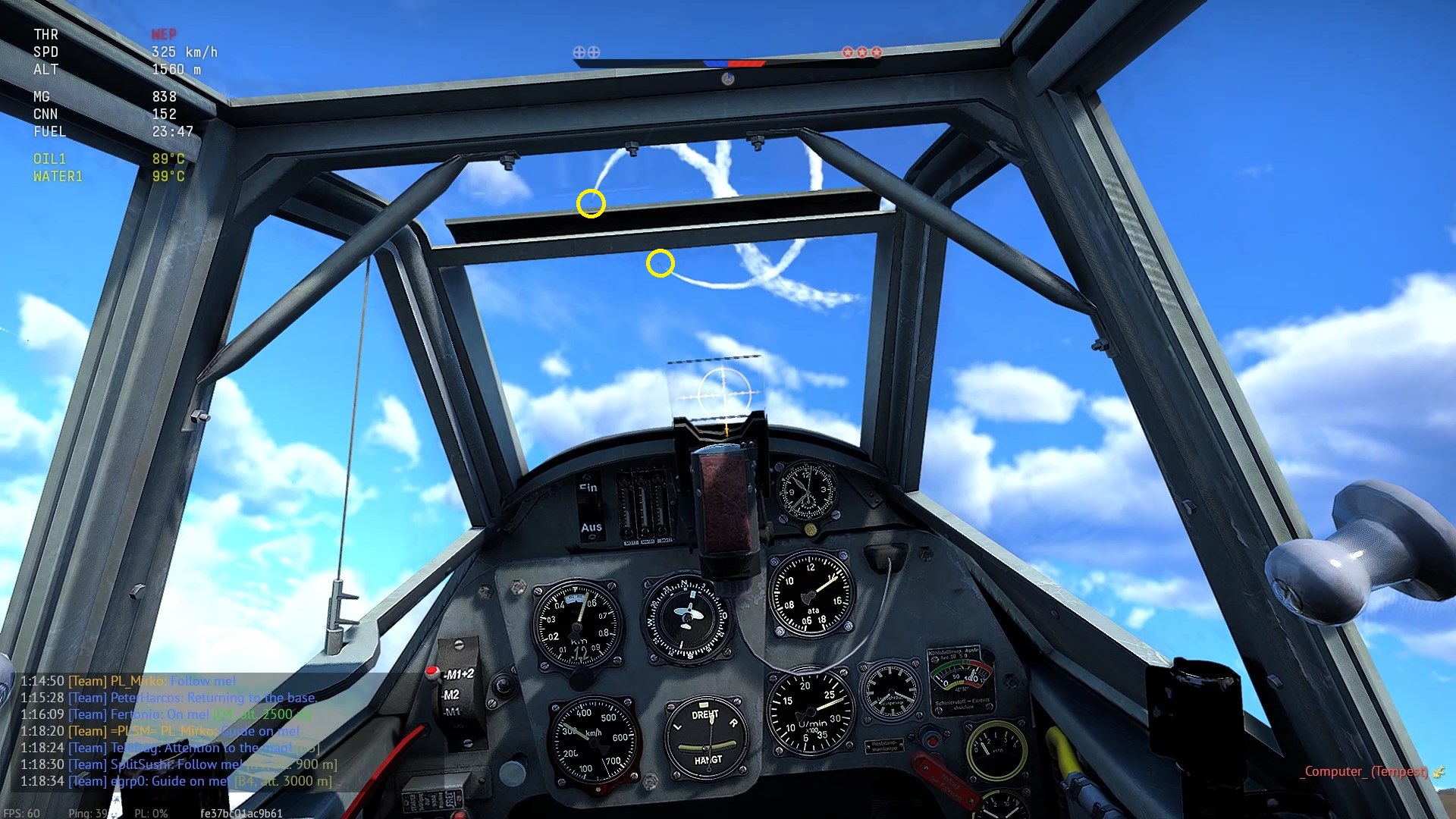 Na szczęście na tyle niegroźnie. Po udanym przewrocie, udaje mi się nie zgubić na tle zieleni wrogi samolot. Przeciwnik mocno zaciągnął drążek - smugi...