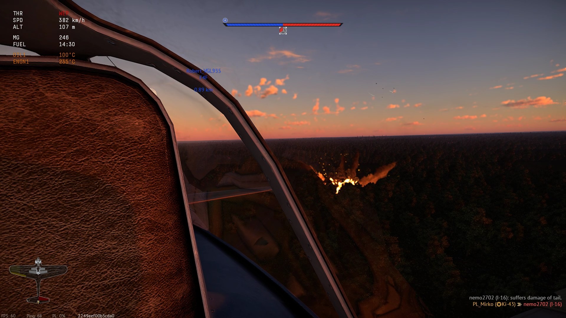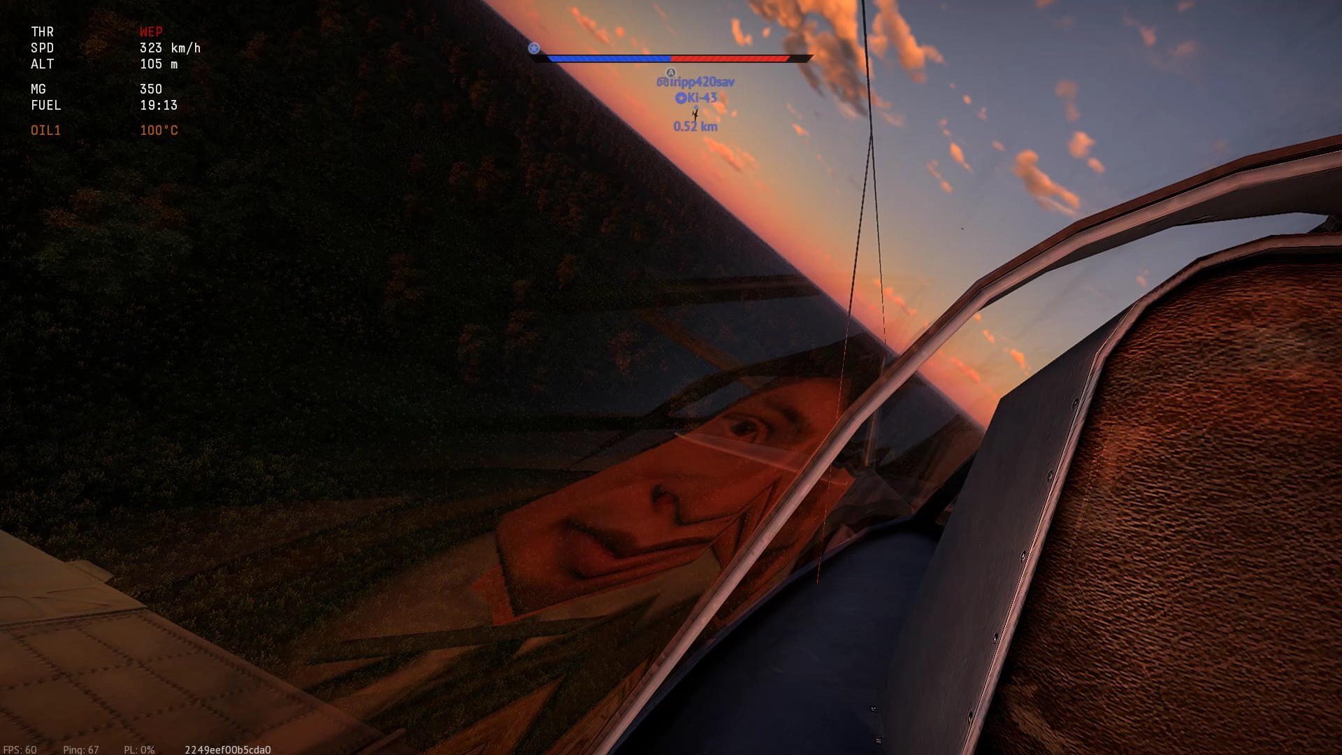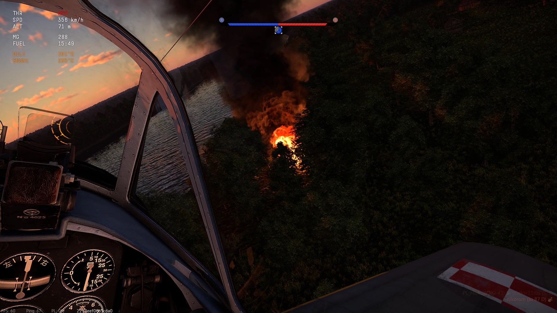 I jeszcze bonus - screen'y z wczorajszej bitwy na mapie Ruhr tym razem w US Ki-43. W promieniach zachodzącego Słońca, las i gleba ma barwę węgla, niewiele widać...