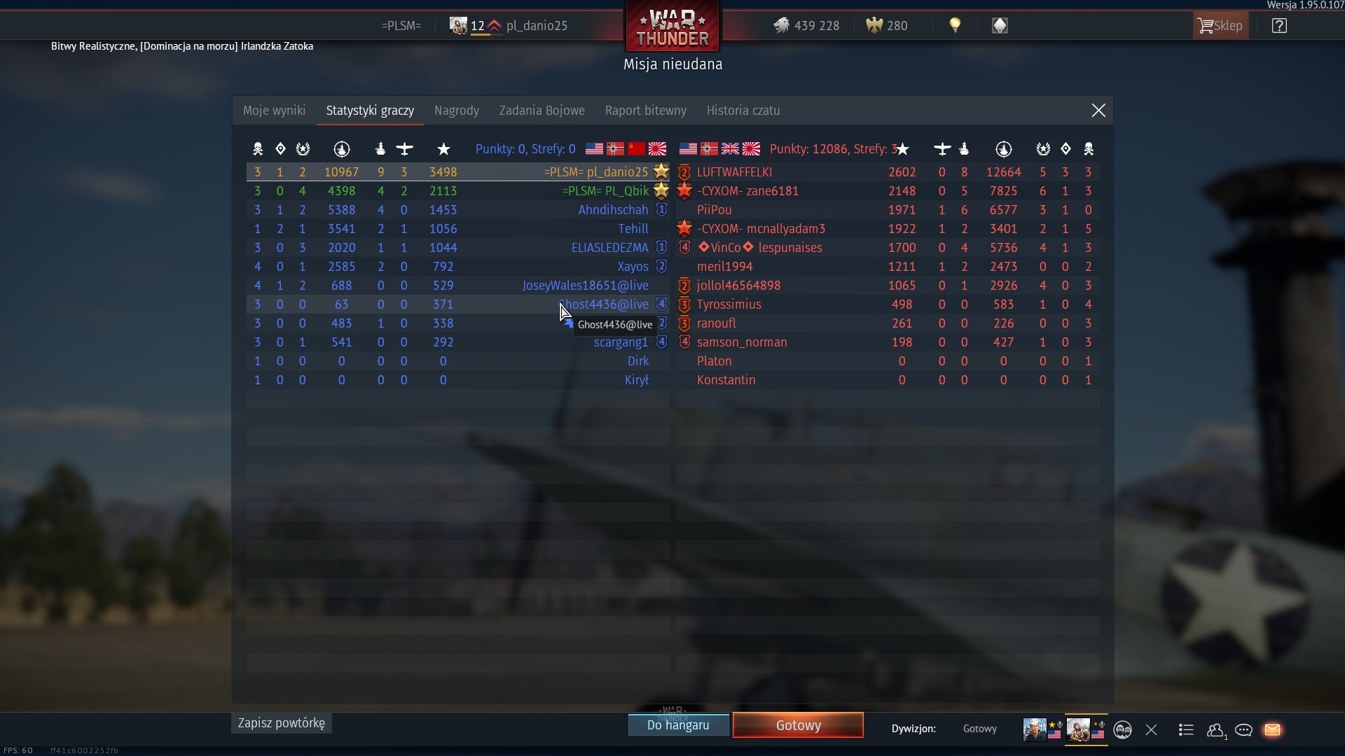 Morski rekord: miejsca w tabeli, ilości punktów, ilości zatopień i zadanych obrażeń.