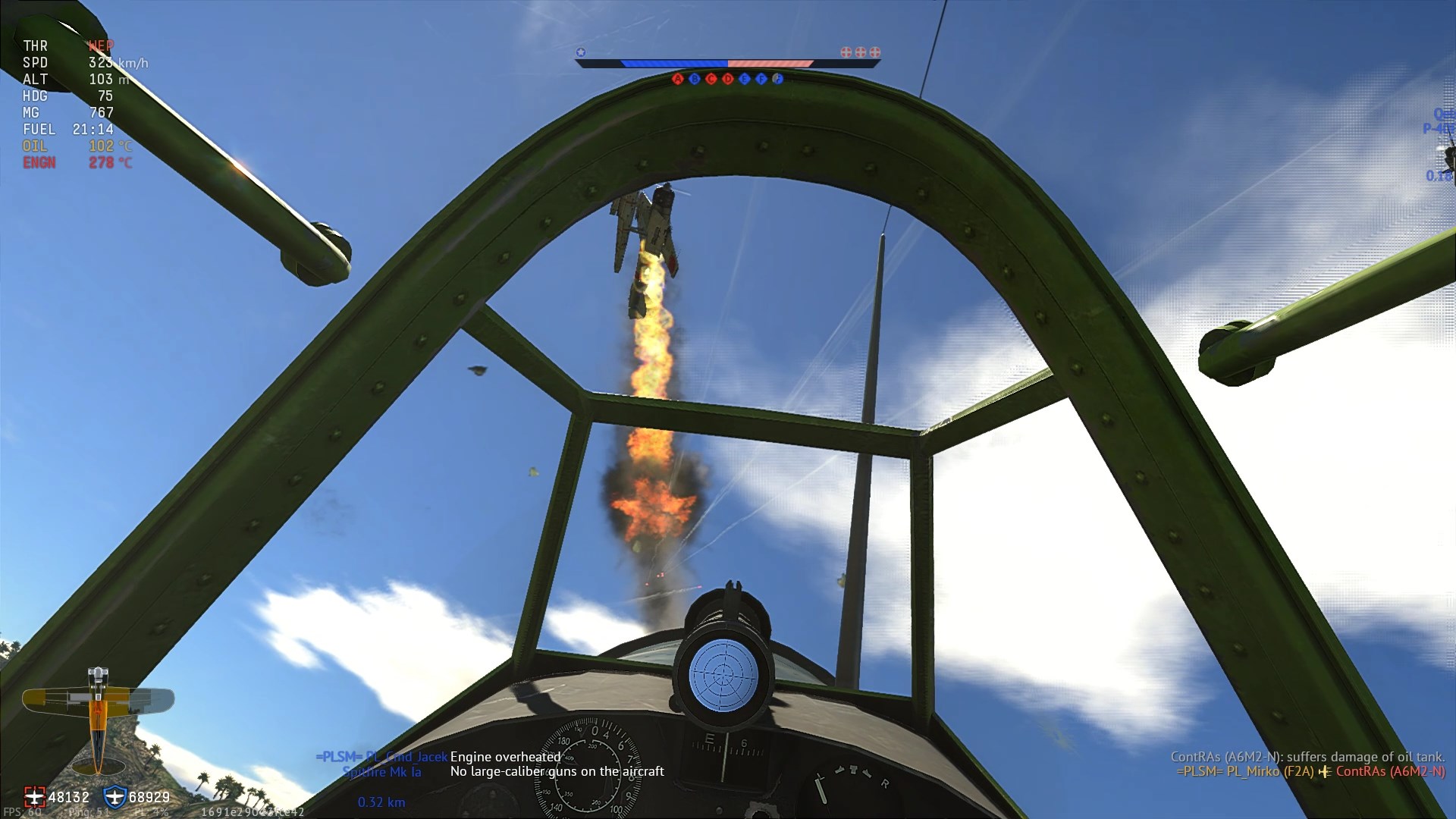 Wbrew obawom, okazało się, że GER He 51 C-1 jest dość przyjemnym w pilotażu dwupłatem. Jak na 1-szą erę, stosunkowo szybko uzyskałem zestrzelenie...