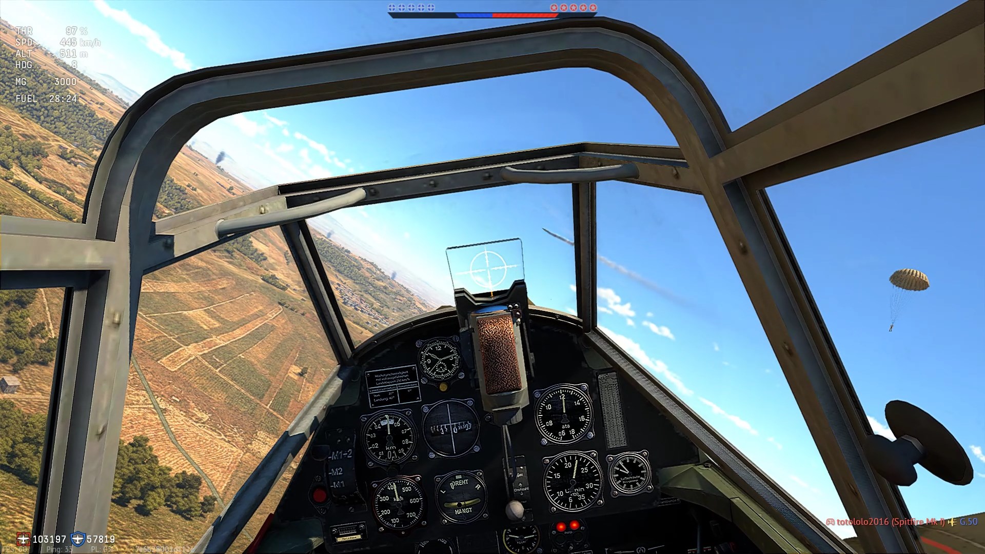 Pilot pierwszego G.50 ratuje się skacząc na spadochronie, a ja jest w dogodnej pozycji do ataku...