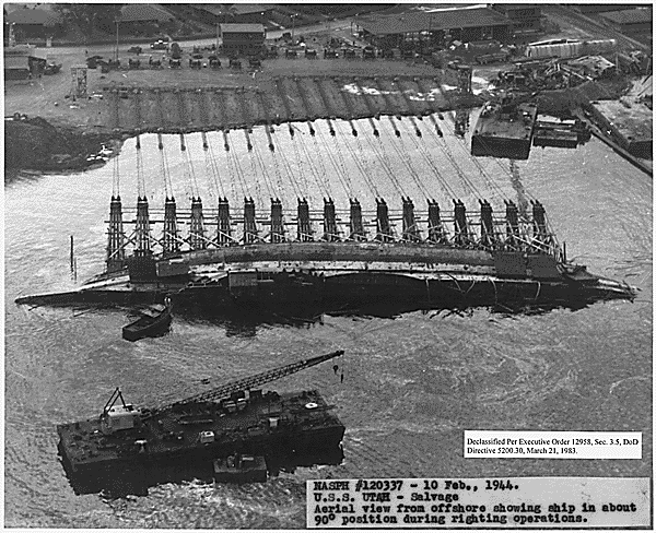 24 lutego w godzinach wieczornych USS Pogy wchodził do bazy w Pearl Harbor. Marynarze stali w rzędzie na pokładzie i salutowali wrakom, które wciąż pozostawały w porcie. USS Arizona leżała wciąż zatopiona, natomiast przy USS Utah trwały prace związane z podnoszeniem okrętu. W oddali w suchym doku stała też Oklahoma, ostatni z trzech wraków, które pozostały w bazie.