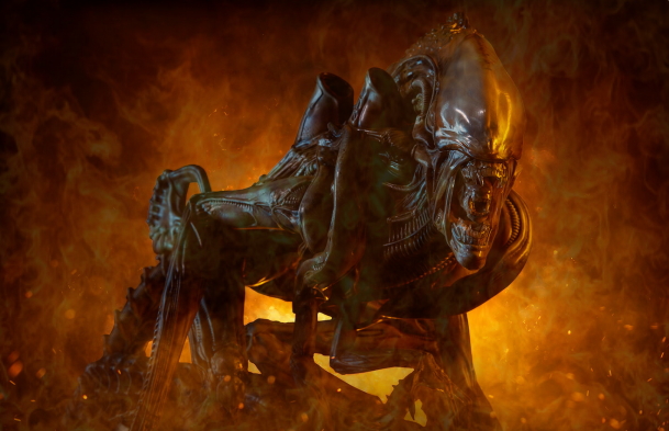 Możemy tylko domyślać się co czuł zwiad w ostatnich sekundach życia, widząc wyłaniającego się z płomieni obcego...