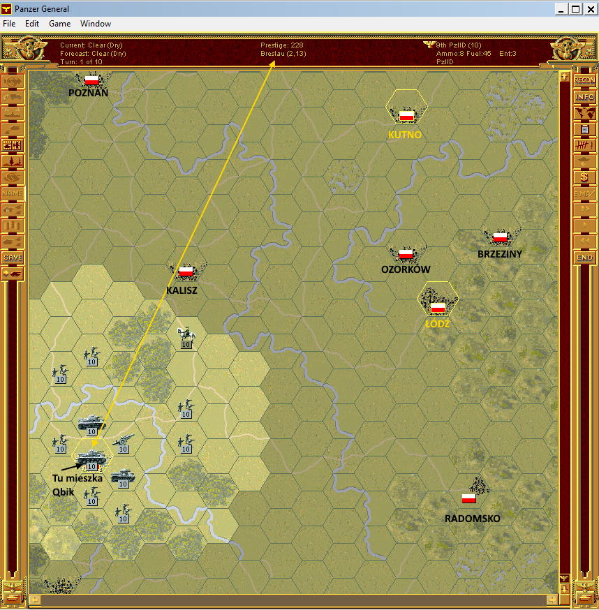 Teraz. W PG1, gracz niemiecki ma 10 tur na zajęcie wszystkich punktów strategicznych. Wrocławia, Łodzi i Kutna. Wrocław już ma.