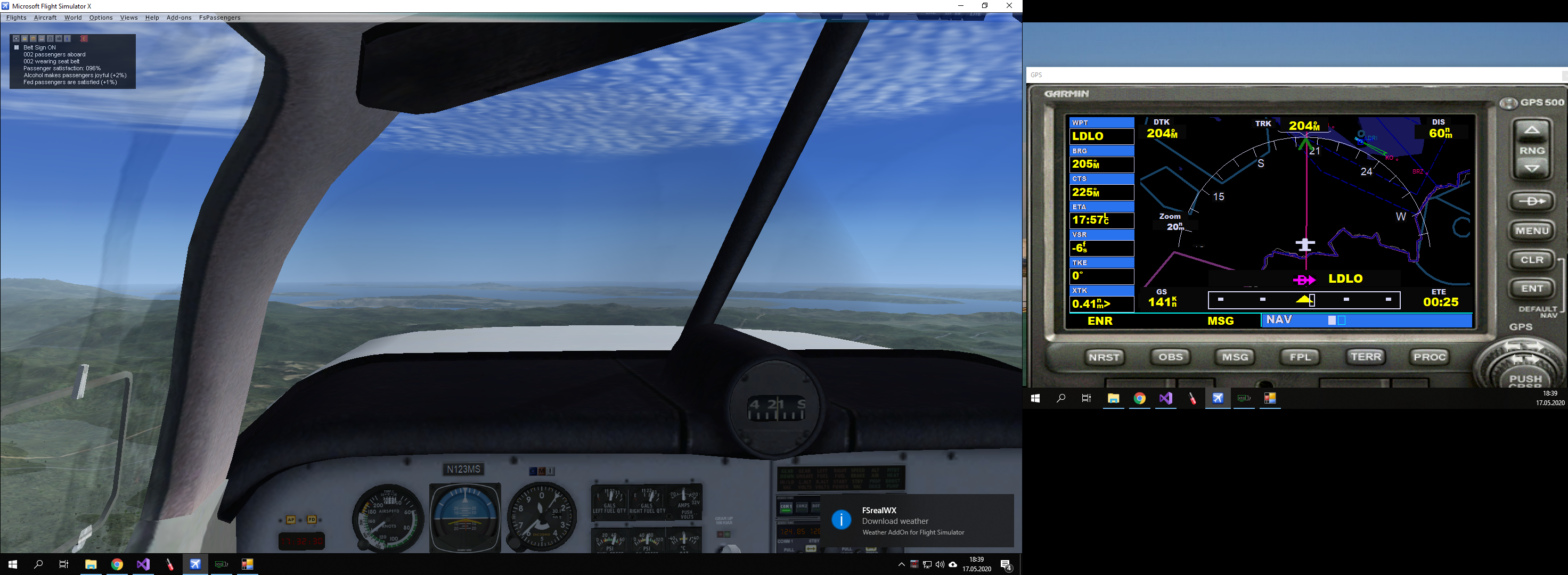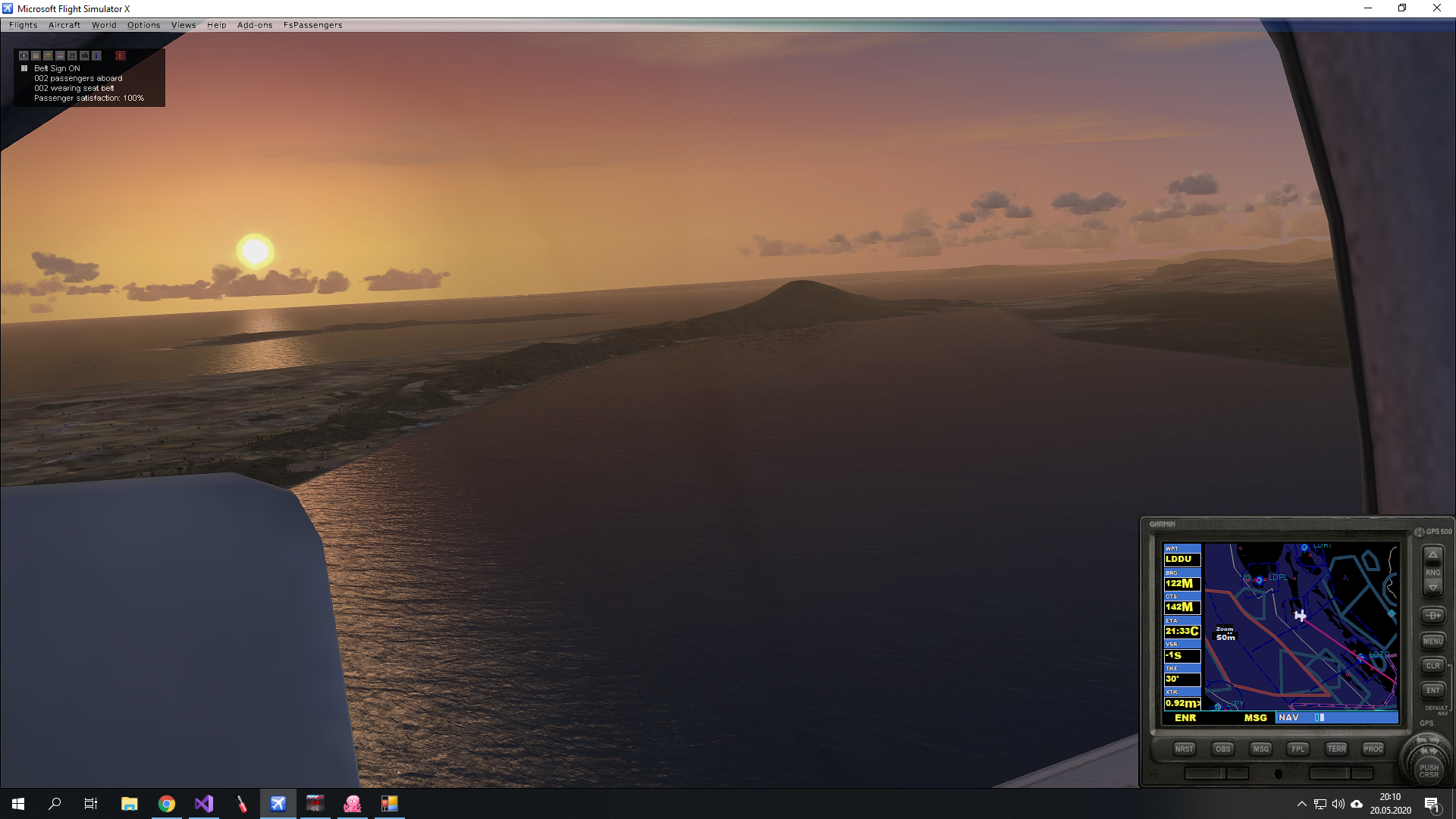 Do tego wyłączyłem eksperymentalny Dx10, bo pamiętam, że błędy były, głównie w oświetleniu. I poleciałem na wieczorną wyprawę z Lošinj LDLO do Dubrownika LDDU gdzie wiedziałem, że pod koniec będą trudne warunki pogodowe (mam zainstalowaną wersję testową silnika pogodowego FSRealWX 3.0, ale po okresie próbnym raczej kupię REX5 - Sky Force 3D, wydaje się lepsze)