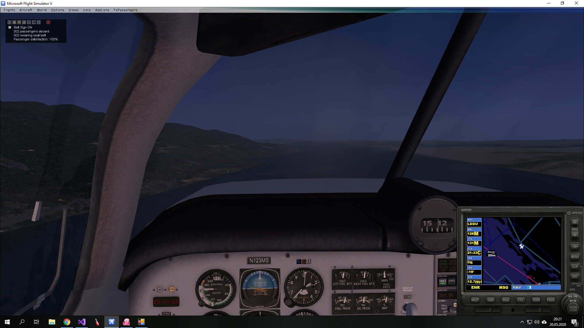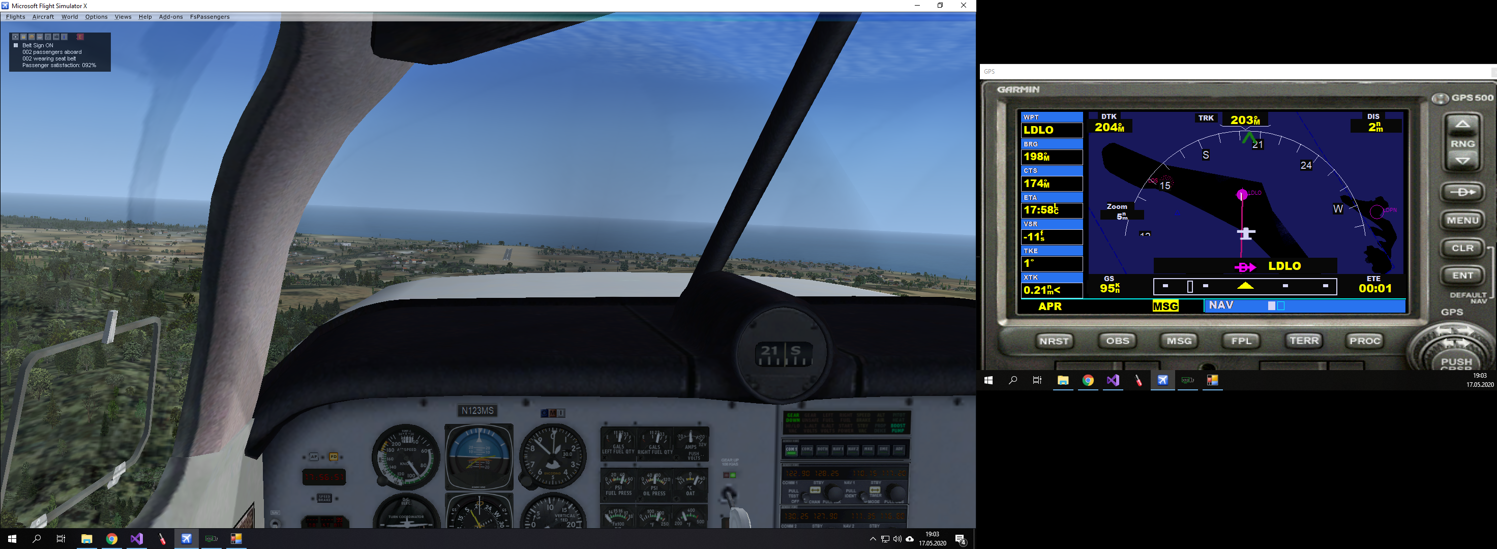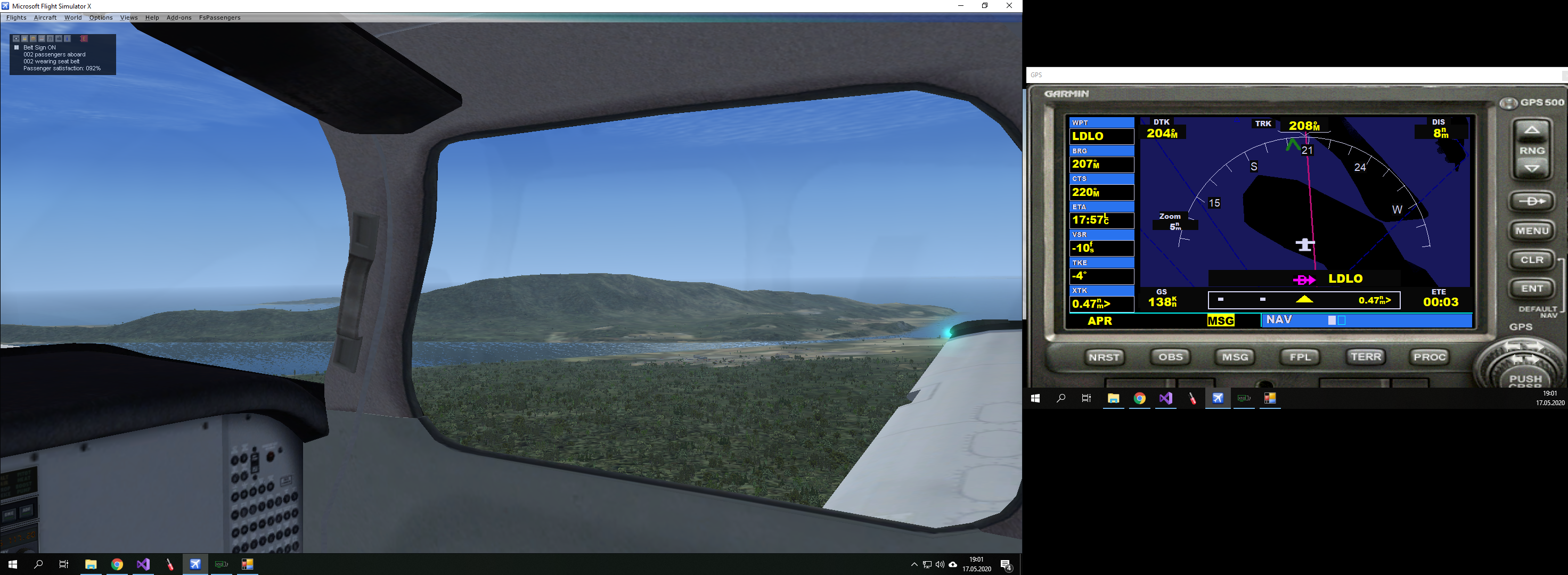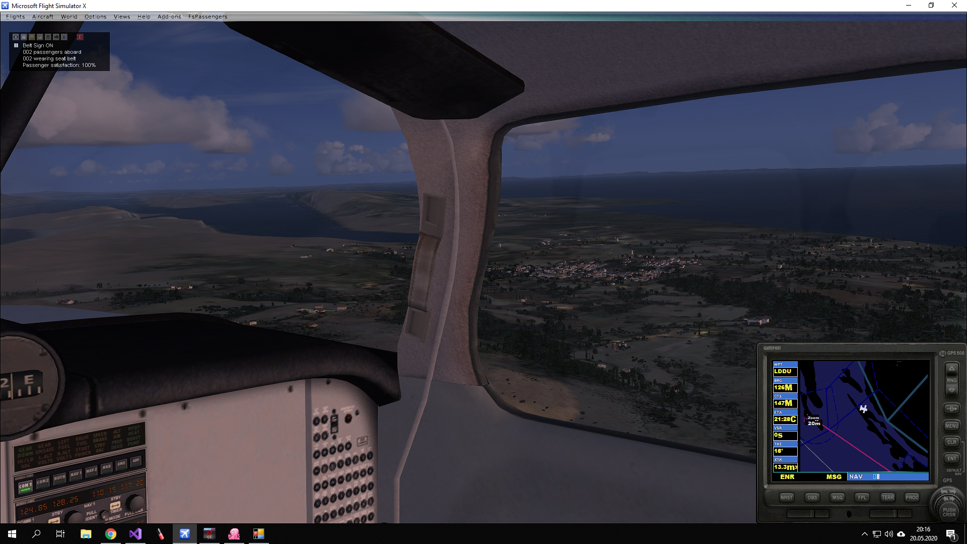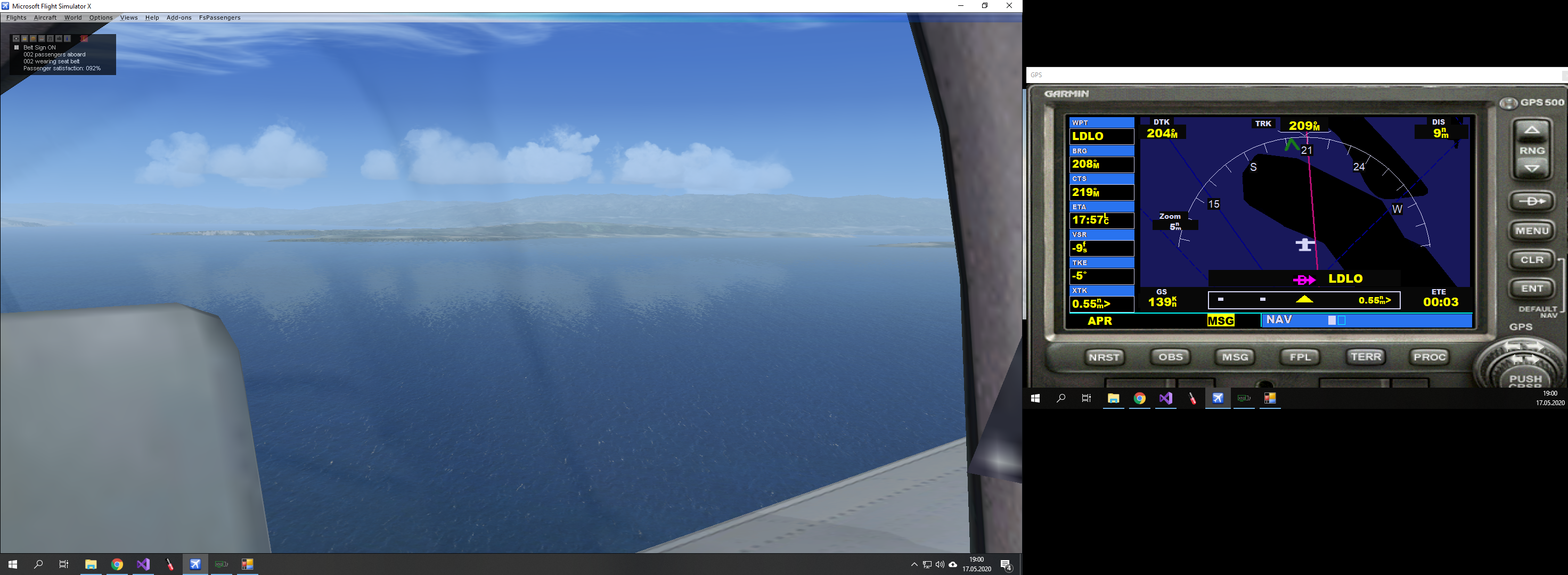 No to ustawiłem kokpit, podłączyłem wszystko, wczytuję grę w miejscu gdzie ostatnio skończyłem czyli obok pasa 2 na lotnisku LDLO i... jestem na środku wody