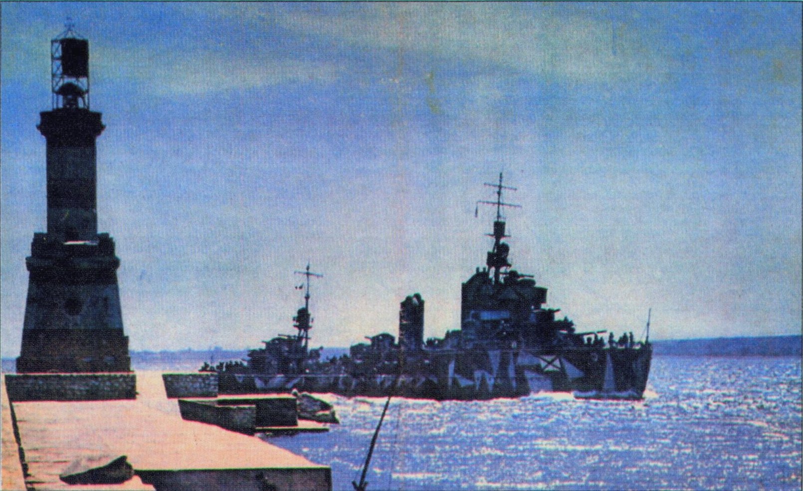 Na zdjęciu widzimy pewien królewski niszczyciel. Podczas drugiej wojny światowej, brał udział w ewakuacji pewnej twierdzy, podczas której został zbombardowany, ostrzelany z karabinów maszynowych z samolotów oraz ostrzelany przez artylerię nadbrzeżną. Udało mu się wydostać, mimo dużych strat i prawie dopłynął do bazy, gdy wskutek przecieku, brakło paliwa... Z czego, aby ratować paliwo, załoga pracowała z wiadrami w uszkodzonym zbiorniku z którego nie dało się pobierać paliwa, ze względu na uszkodzenie rurociągów....