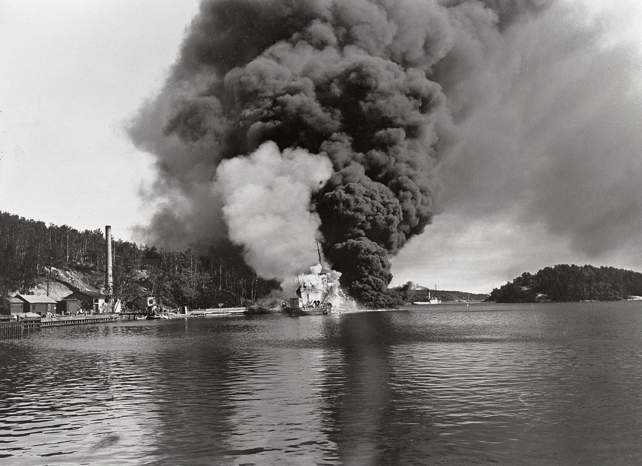 HSwMS Göteborg eksplodował Klas Horn i Klas Uggla się spaliły i poszły na dno.