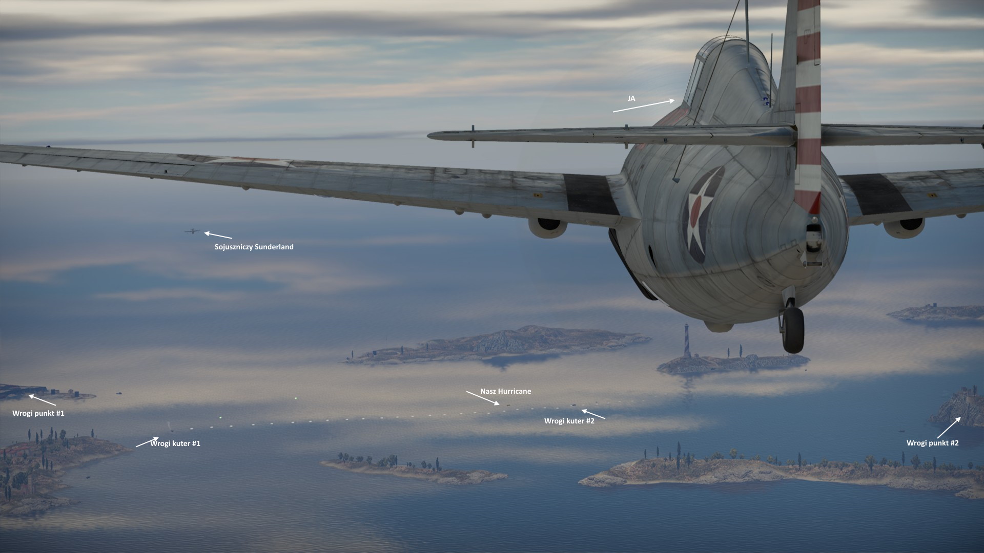 Postanowiłem oczyścić drogę dla ewentualnego kolejnego wodnosamolotu... biorąc na cel wrogów patrolujących okolicę drugiej warowni...