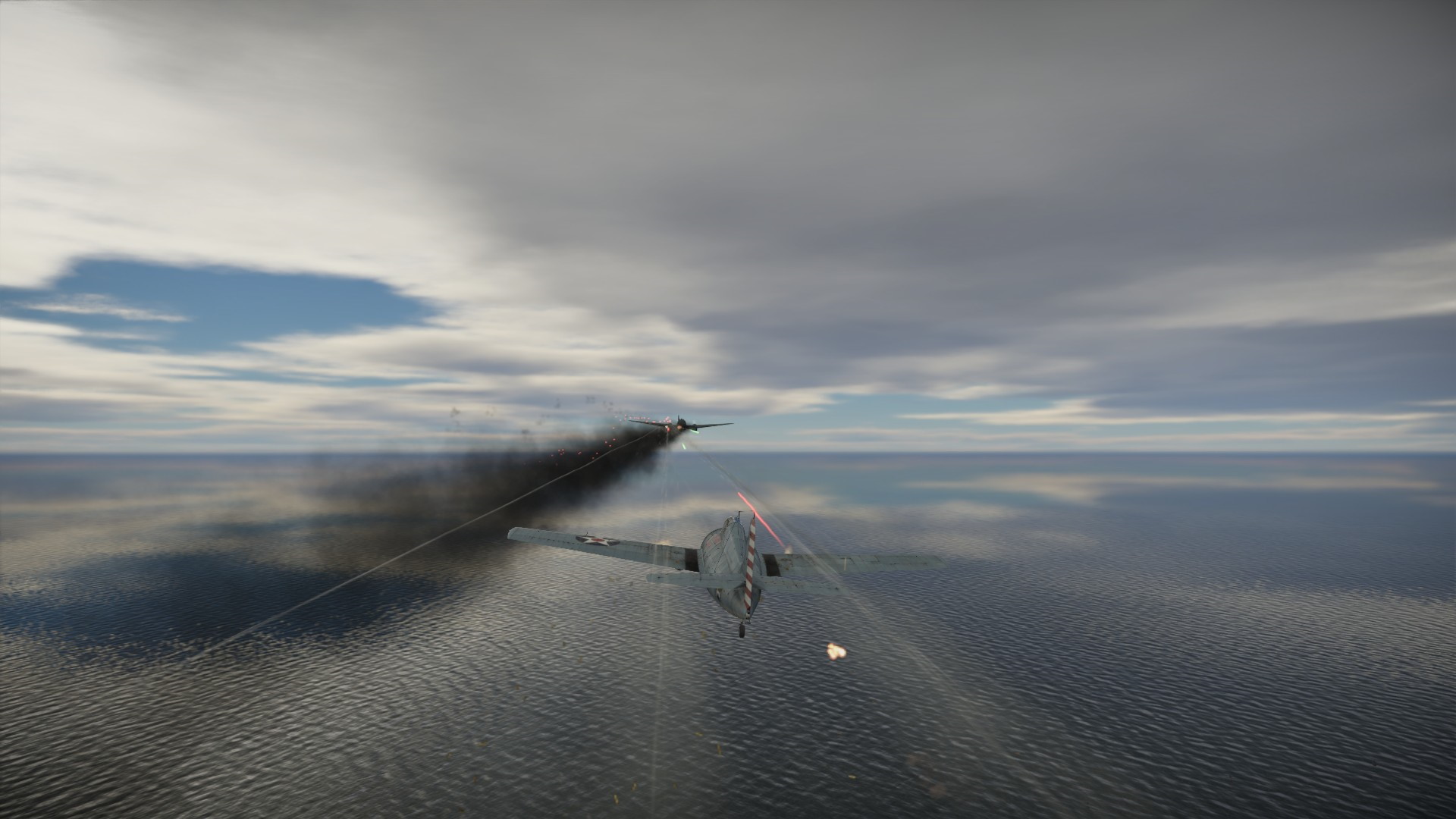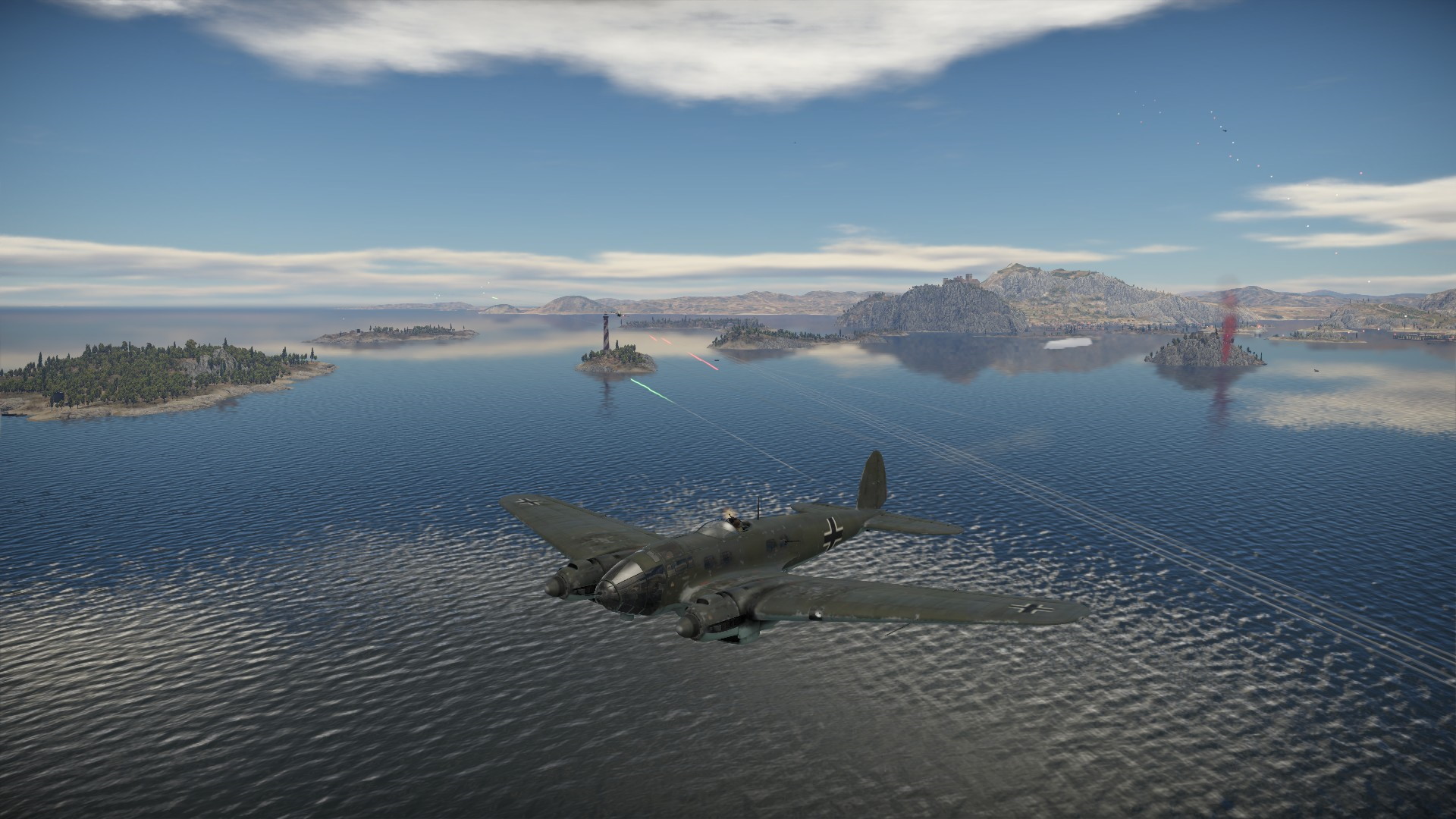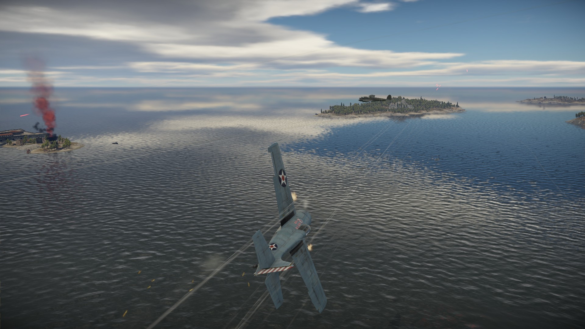 Wrogi bombowiec postanowił zamienić się w myśliwiec i zaatakować naszą łódź latającą...