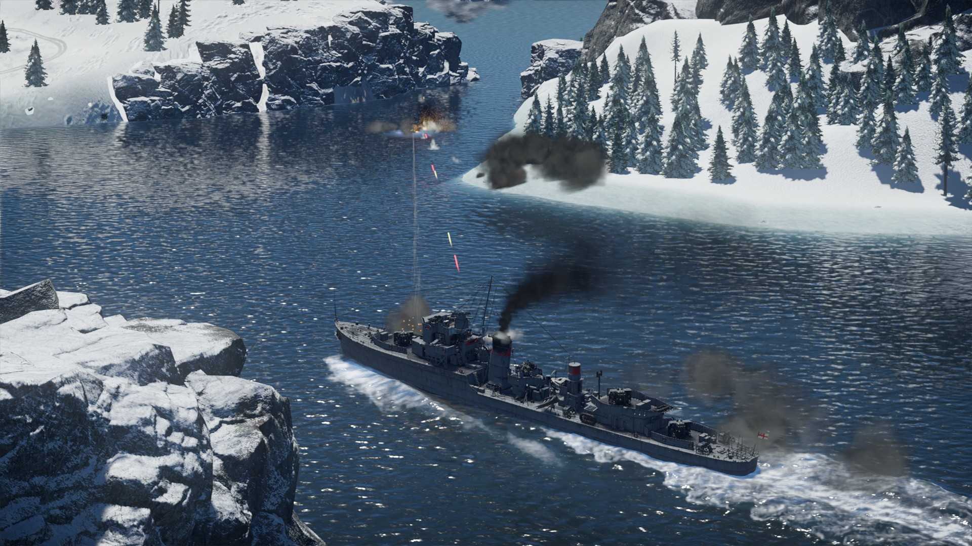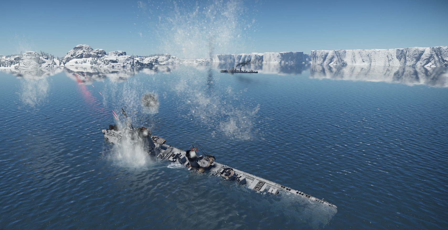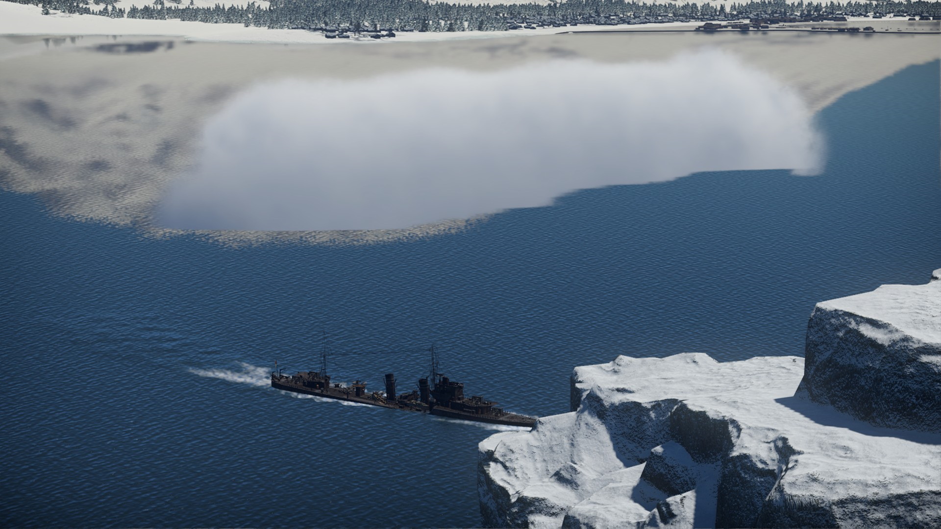 Na wroga nie trzeba było długo czekać. Zbliżaliśmy się do wejścia do portu, gdy nasze kutry pilnujące przejścia dostały się pod ostrzał, a po chwili zza oblodzonych skał, wyłonił się pierwszy niszczyciel...