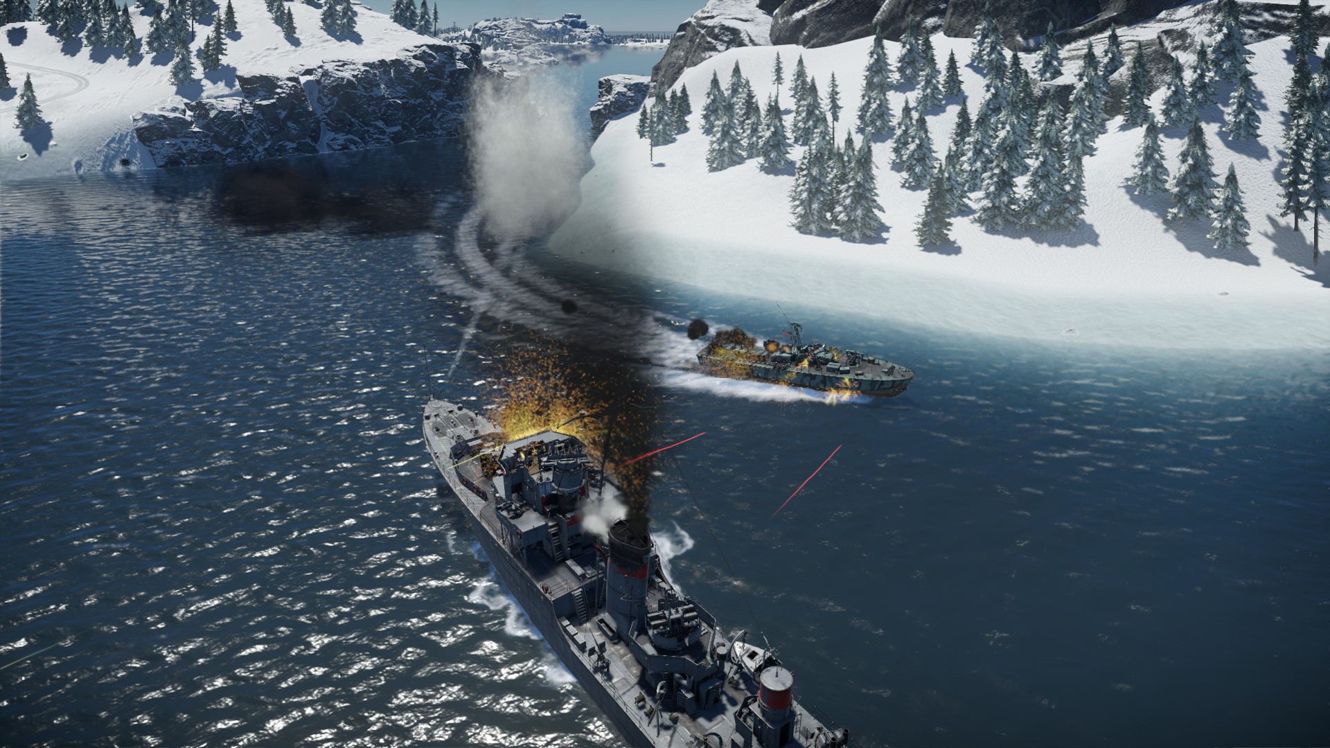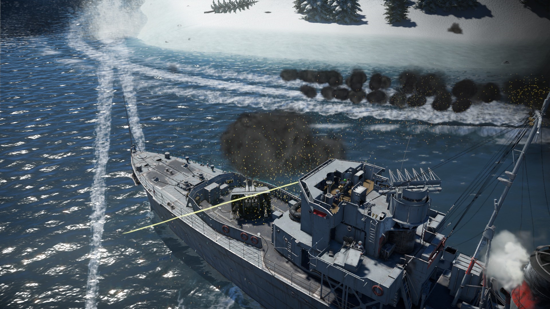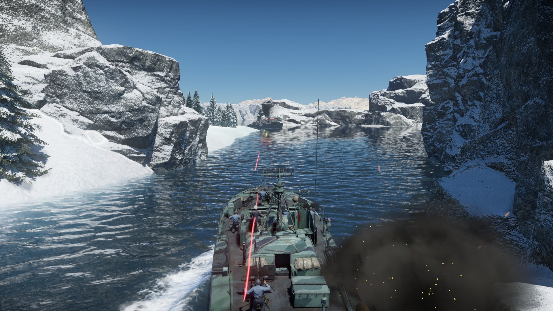 Nie mogliśmy jednak oglądać tego pięknego widoku, gdyż iNavy przypuściło kolejny atak. Kuter torpedowy wyskoczył naprzeciw nas, strzelając z działek i wypuszczając torpedy...