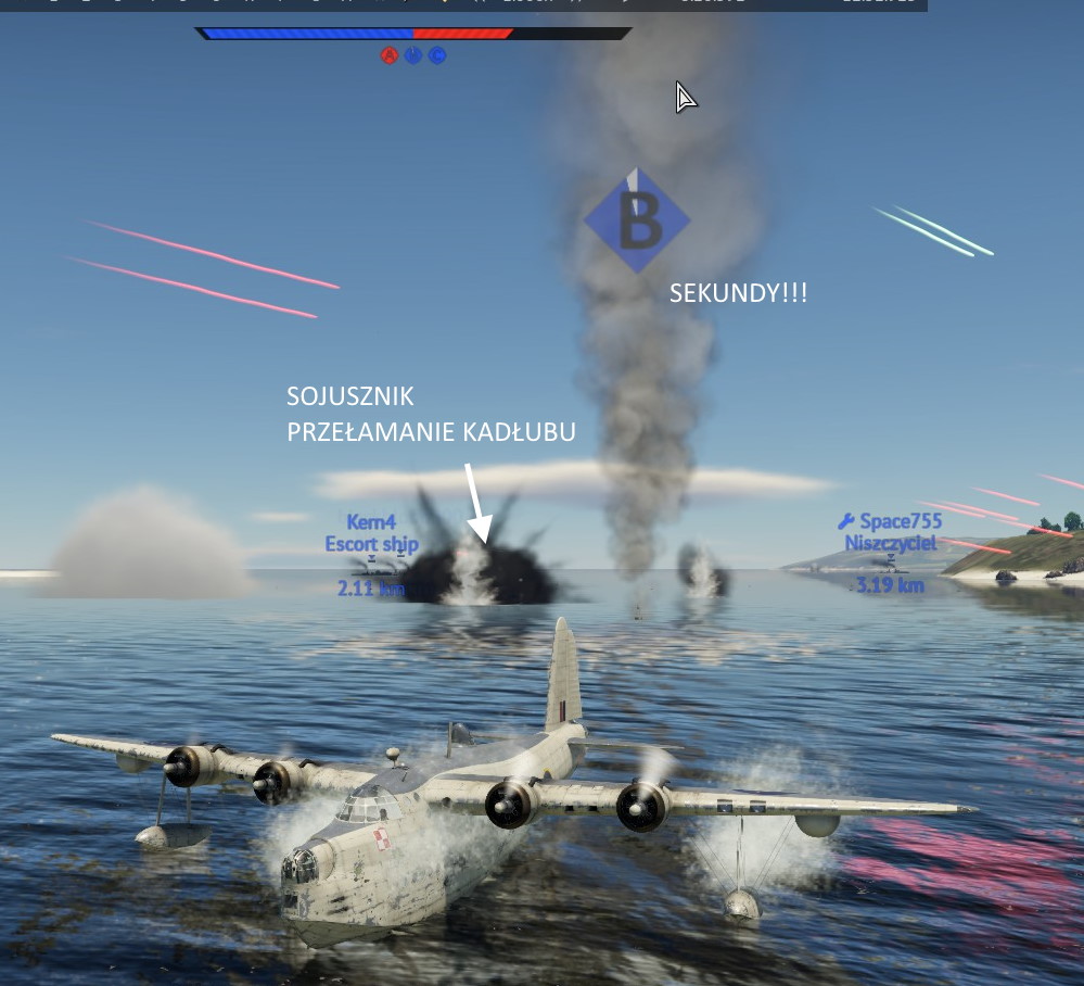 Metoda dość ryzykowna... Zanim torpeda trafi, wodnosamolot może nas zestrzelić. Zaletą jest fakt, że wodnosamolot nie przetrwa nawet pobliskiej eksplozji torpedy.