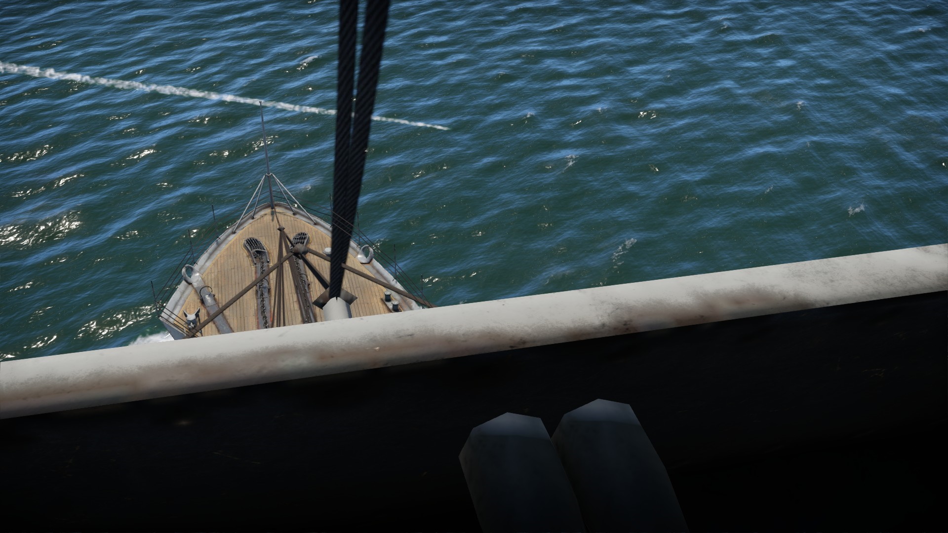Potężny okręt powoli wytracał prędkość, a wszystkie działa zgodnie z rozkazem, czekały na pojawienie się wrogiego kutra, który był uwięziony w małej zatoczce...