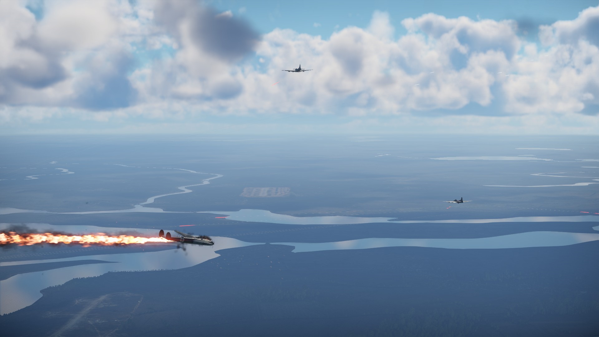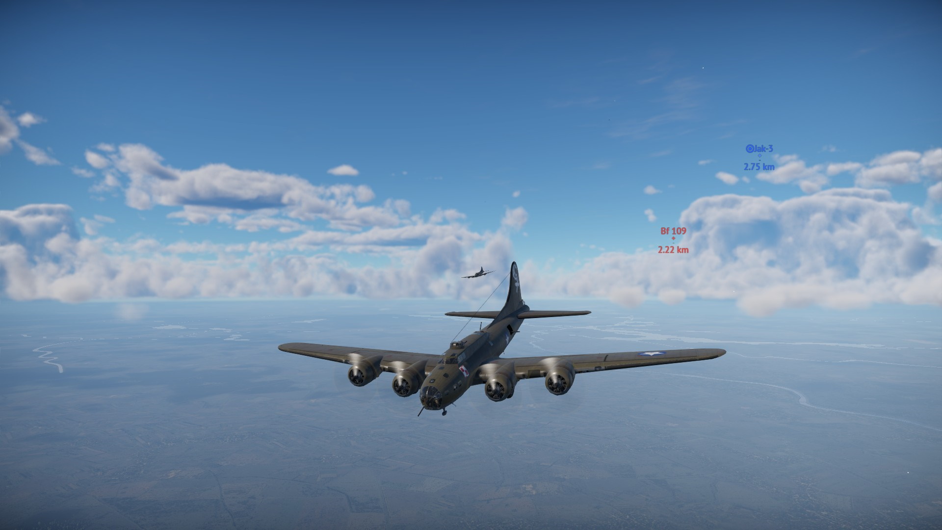 Niestety, zaraz po zawrocie dostrzegliśmy wrogie samoloty. Myśliwiec miał nad nami sporą przewagę wysokości, a bombowiec... albo ścigał nas, albo leciał po prostu na nasze pozycje.
