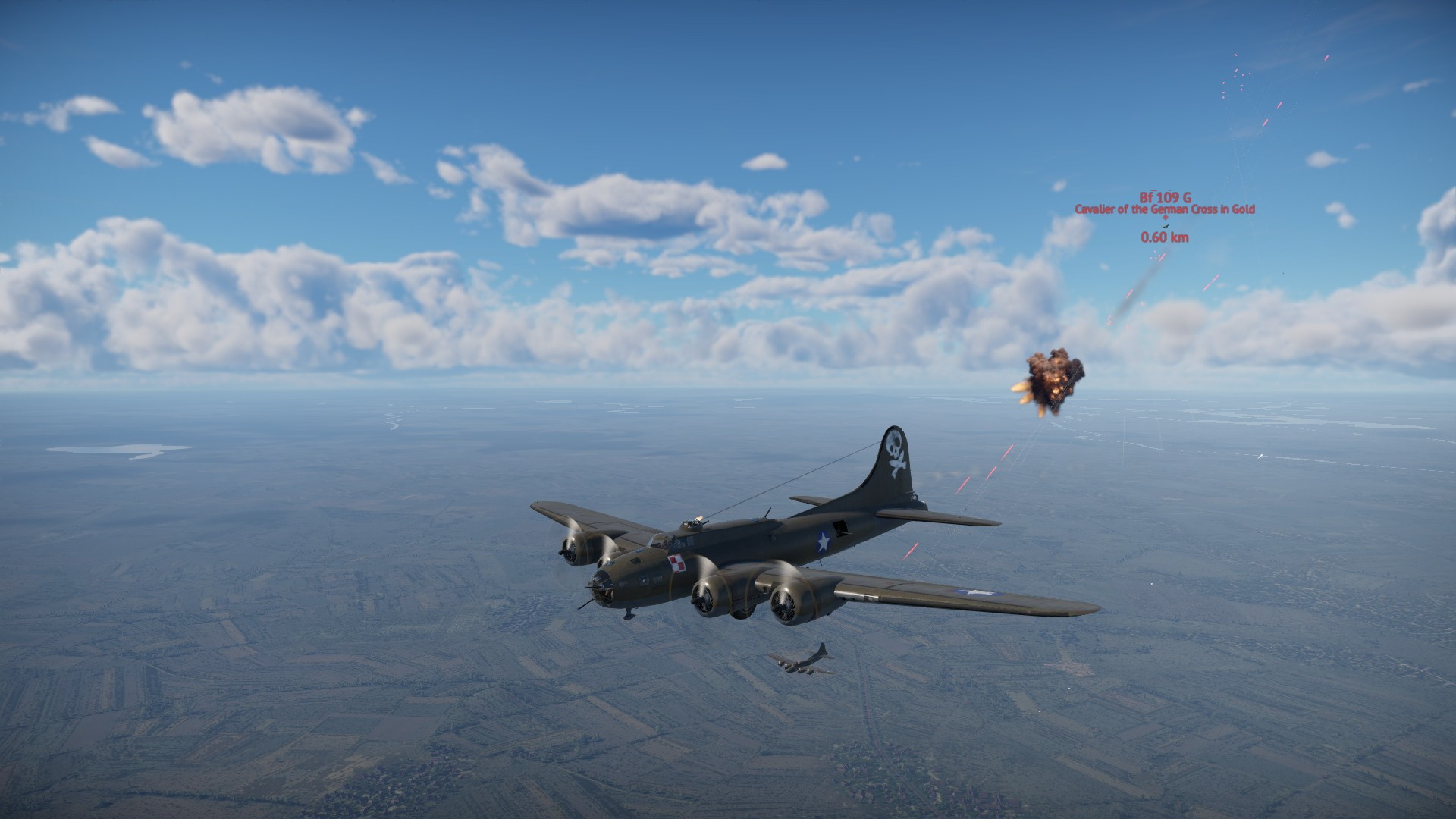 Jednak to jest wspaniałe uczucie, gdy widzisz jak zestrzelony przez twoich strzelców wrogi myśliwiec wali się na ziemię... nawet, gdy obserwujesz to dyndając na spadochronie dwa kilometry nad ziemią! (patrz screen z podpisanym Qbikiem na spadochronie