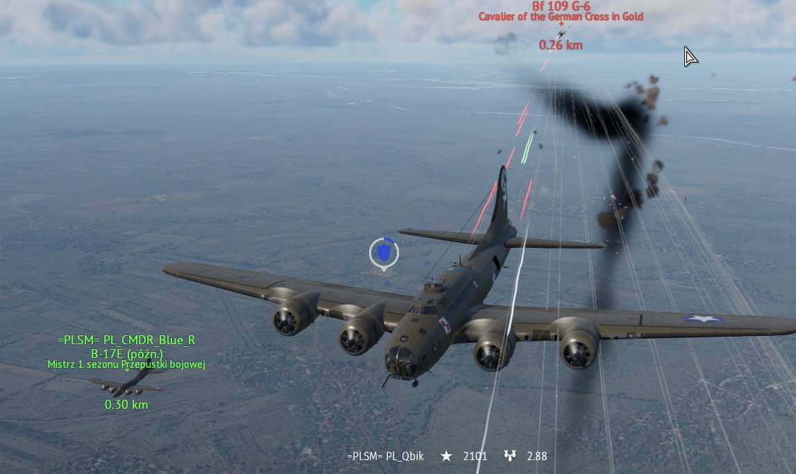 Wróg wziął na celownik bombowiec Qbika, prując do niego z działek i KMów...
