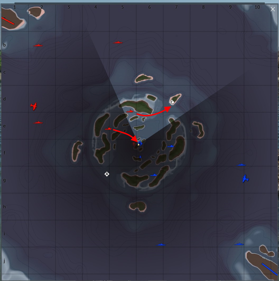 Polem bitwy znów była południowa strona Fiji, ale tym razem atakującymi byli tylko Japończycy. My postanowiliśmy użyć sprawdzonej taktyki, natomiast wróg postanowił to skontrować rejsem w kierunku C i zwrotem na B.