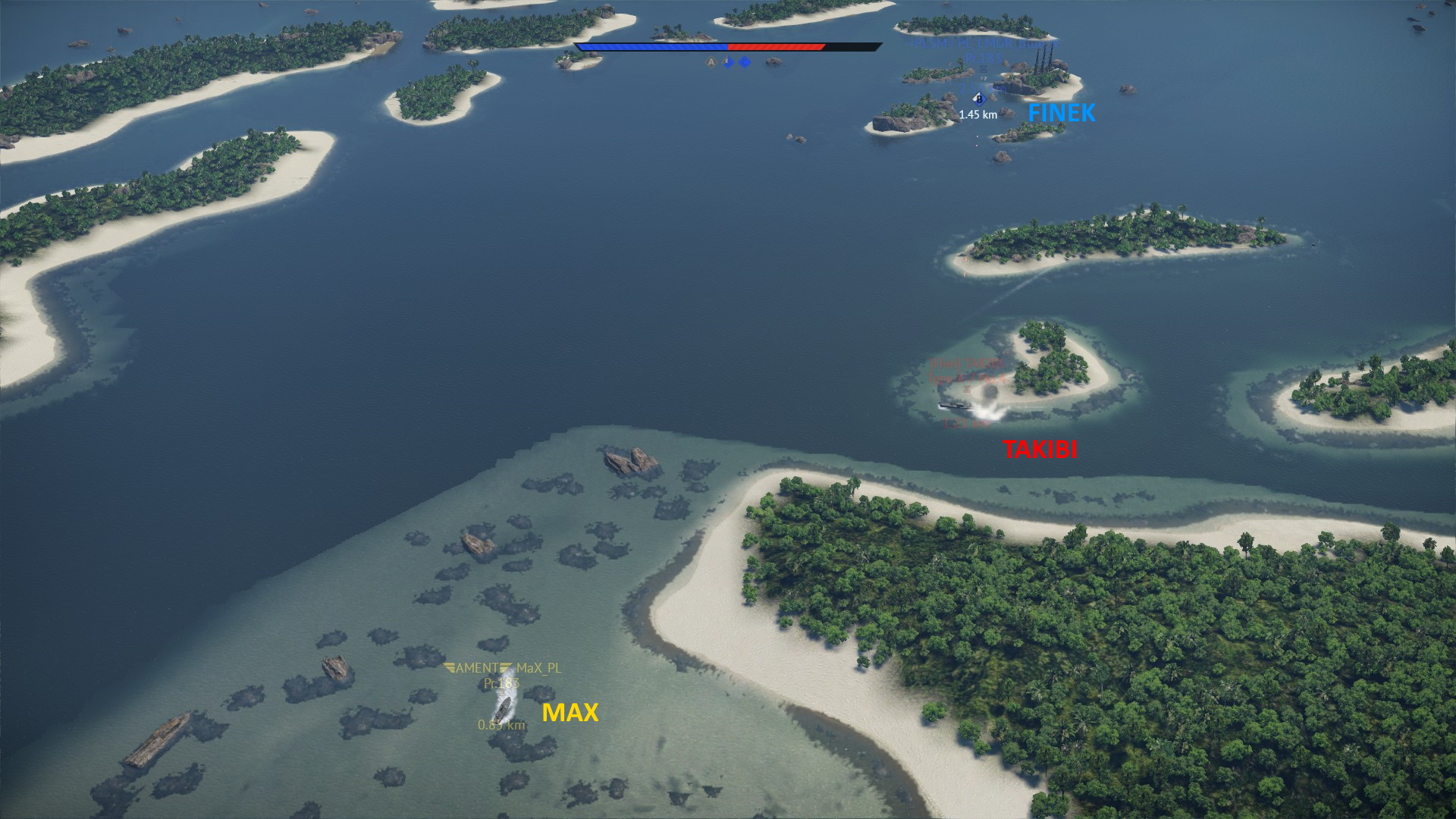 Choć BoatBois zajęli B, to szybki atak Finka wyeliminował jeden z ich kutrów (Pietrow strzela jak zawsze celnie)...