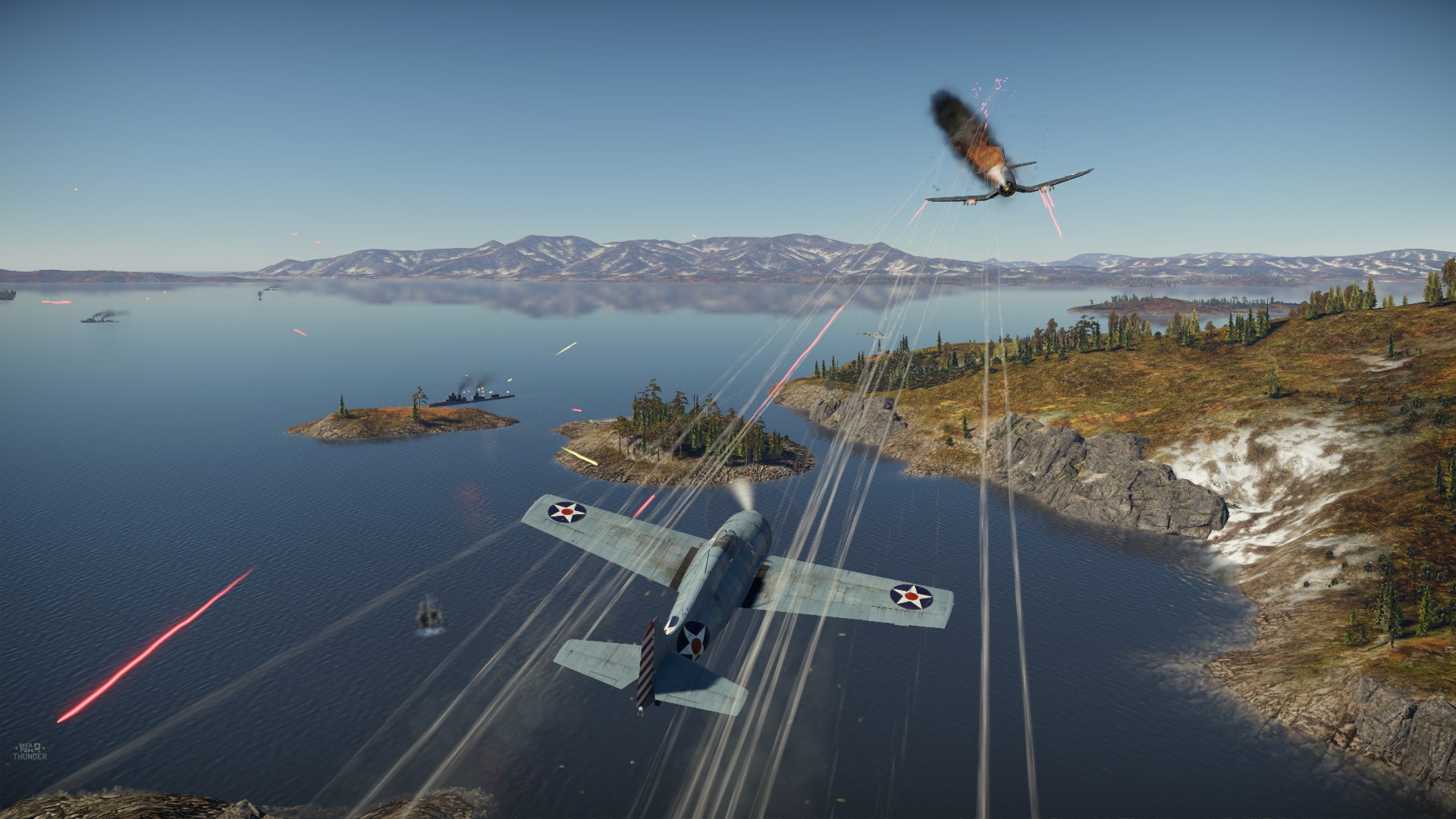 Brakowało mnie 1 zestrzelania do zadania... I tak jakoś rzuciłem się na F4U nad wrogą flotą, a potem wiałem dolinami i górami :)