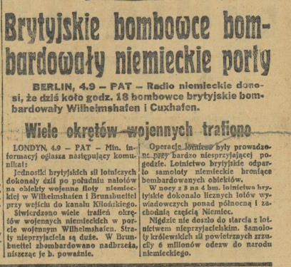 -Anglicy zbombardowali flotę niemiecką w Wilhelmshaven i Cuxhaven! Polskie bombowce zbombardowały Berlin!
