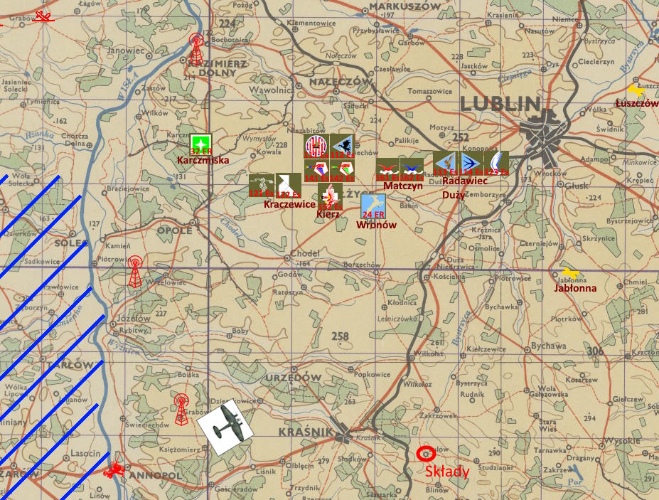 -Niemcy też nie mogą latać w kółko tymi samymi maszynami. Przecież nie tylko my tutaj walczymy. Zobaczymy na czym stoimy, ale wygląda na to, że utrzymany 1 patrol i reszta maszyn w gotowości. Niemniej jestem zdania, aby patrol pilnował raczej drogi z Radomia do Wisły. Tam może się bardziej przydać, aby osłonić naszych, co będą się cofać ku Wiśle.