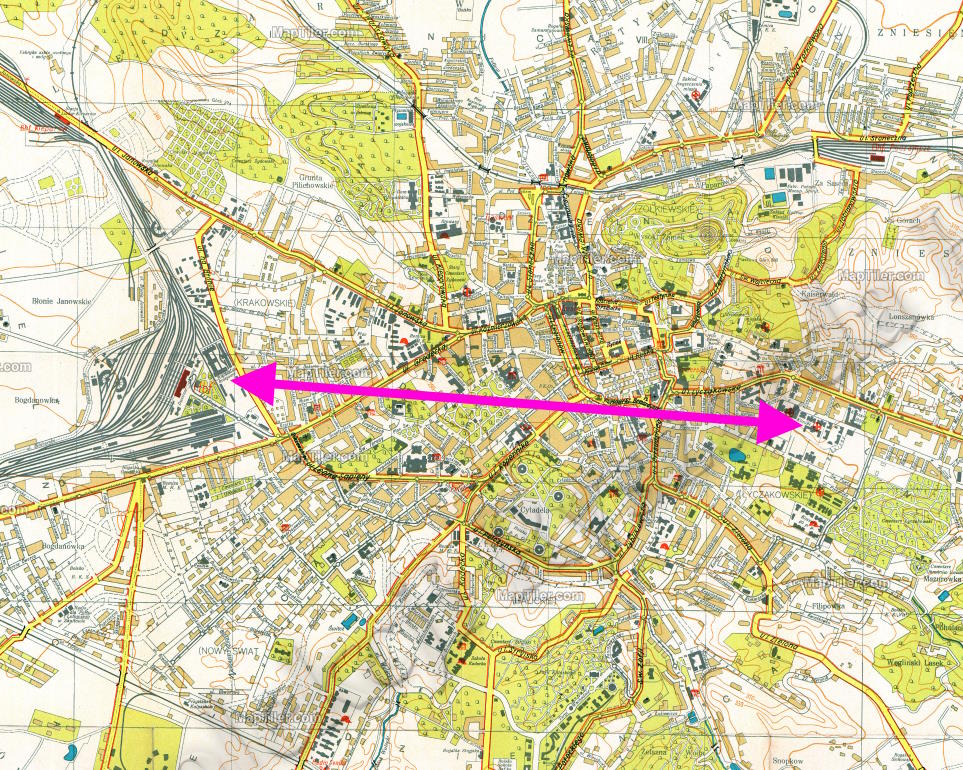 Dworzec? Feliks starał się przypomnieć plan miasta... Dworzec był gdzieś na zachodzie... chyba zaraz za śródmieściem... Oni byli na wschód od śródmieścia... Ale ile ich dzieliło? Góra kilka kilometrów...