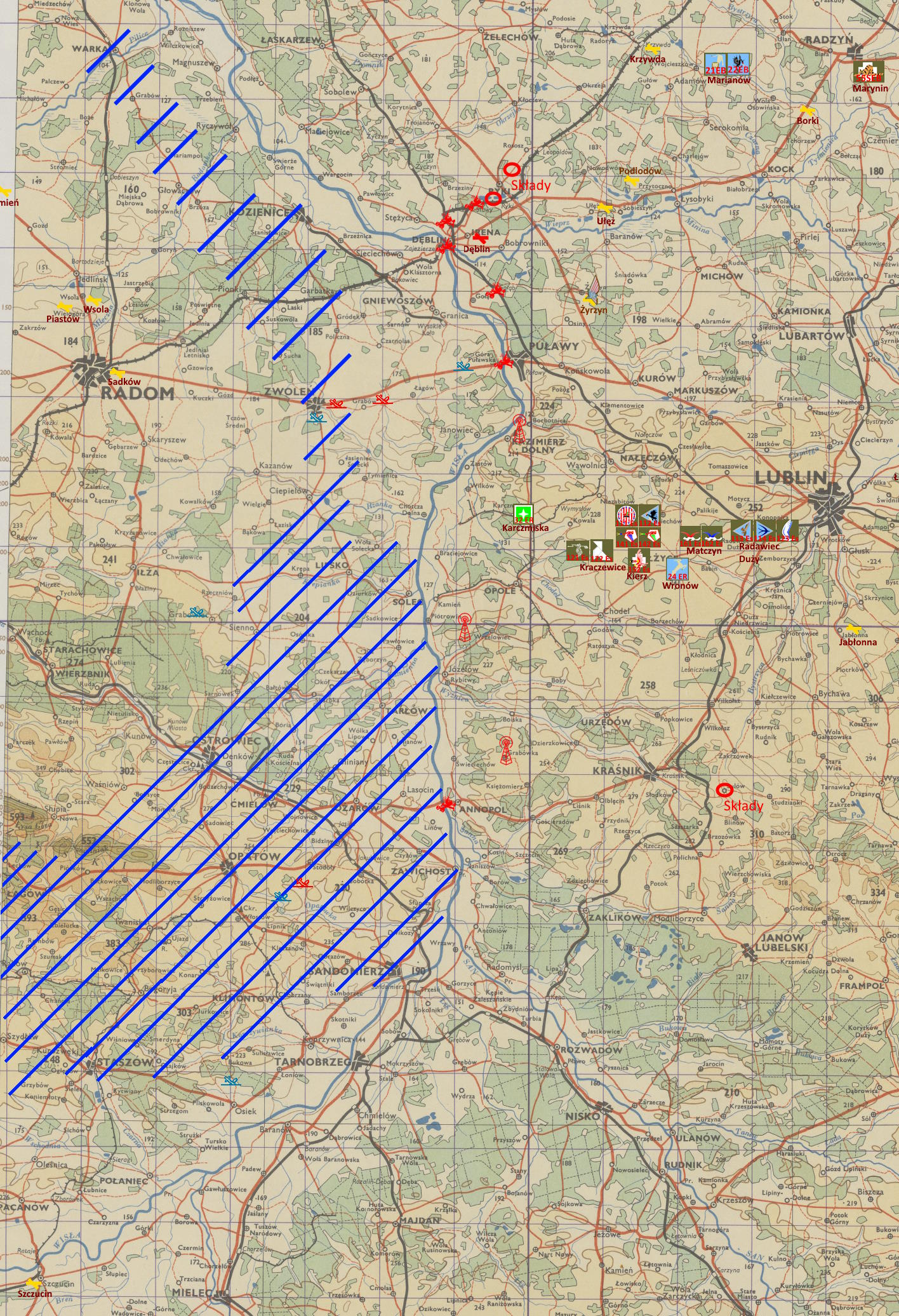 -Żadną. No, prawie. Wiemy gdzie kilka jednostek stacjonuje. - powiedział Edward - A nawet jakbyśmy mieli to nic nie da. Generał Piskor w Lublinie podejmuje decyzje. Więc wtedy my byśmy informowali Kawalerię, oni Piskora, a on zapewne pytałby nas o szczegóły... Wiesz jak to jest z przekazywaniem informacji. Zawsze ktoś ma dodatkowe pytanie. Więc my mamy się łączyć ze sztabem generała... jest tam też nasz pułkownik i on dalej wydaje rozkazy. Zapewne jakaś dywizja stoi w odwodzie i to ona będzie kierowana do przeprawy. - gdy mówił te słowa, kapitan Jasionowski podszedł do stołu z mapą. Edward kontynuował - Tak więc teraz mam trójkę gdzieś w okolicach Sandomierza i lecą ku Warszawie i parę, która pilnuje Wisły. Pozostałe maszyny są albo naprawiane, albo jak te na których przylecieliście uzupełniają paliwo. Więc nawet jak wykryjemy wyprawę bombową nie mamy sił do uderzenia.
