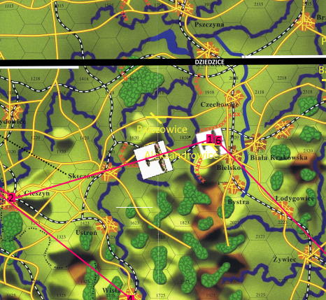 -Intruz minął 16-21 [umocniona pozycja pod Skoczowem, dop. Finka]. Wysokość 7 kilometrów. Andrzej potrzebował jeszcze kilku minut, aby wspiąć się na tą wysokość...
