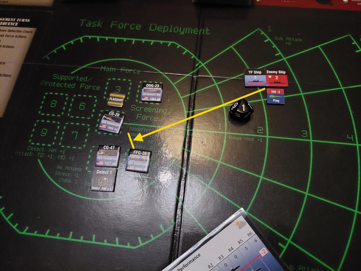 Okazał się to najgorszy pomysł na jaki wpadł kapitan. USS Ticonderoga wykrył okręt podwodny i wspierając się sonarem aktywnym uzyskaliśmy dokładny namiar na okręt podwodny klasy Foxtrot podchodzący pod nasz zespół. Mieliśmy jeszcze sporo torped i USS Scott prowadził zmasowany atak na foxtrota, zatapiając jednostkę.