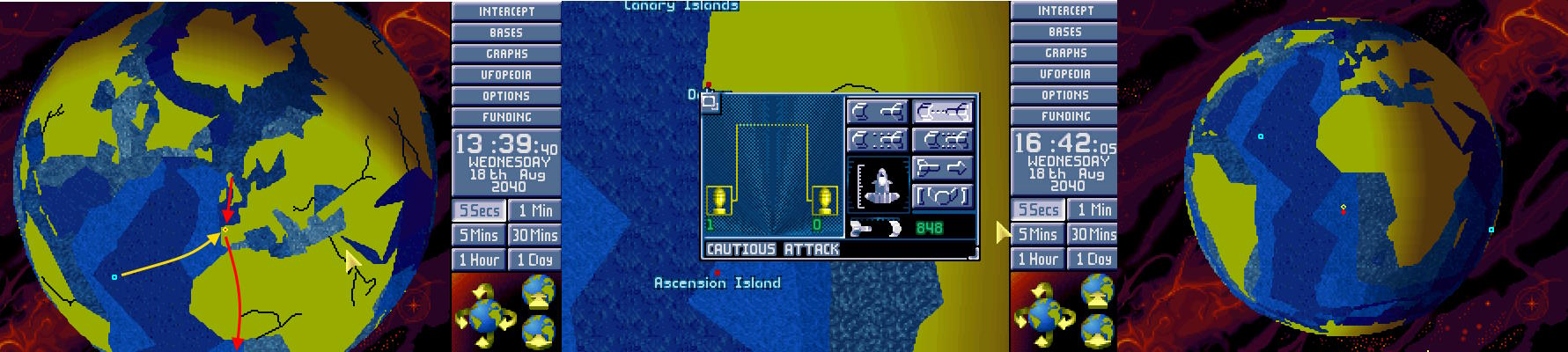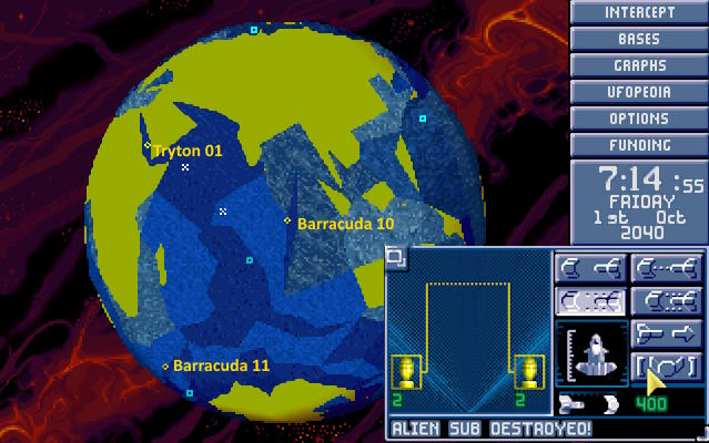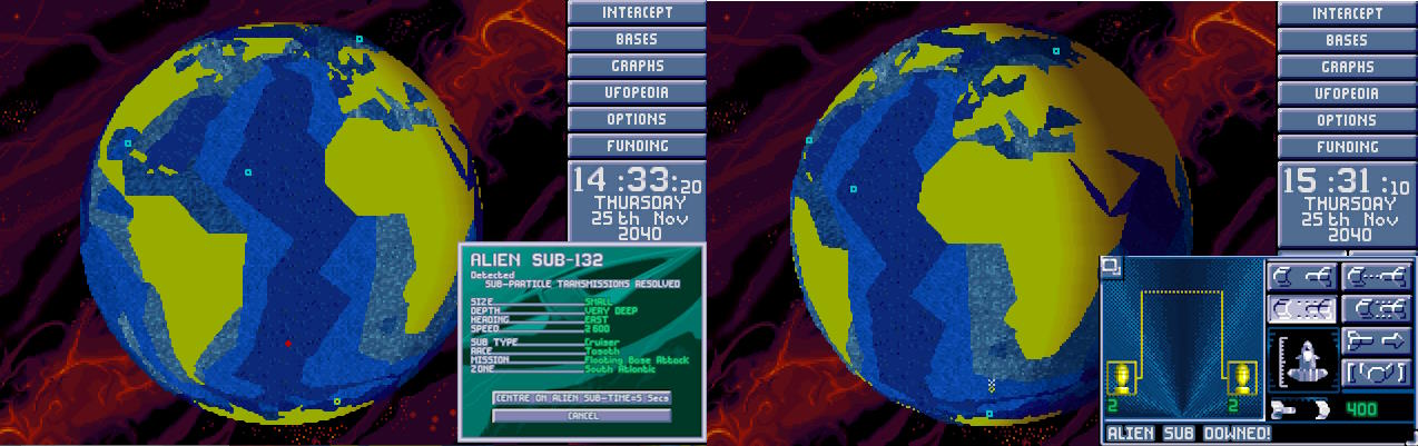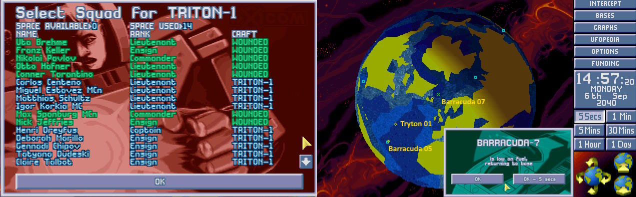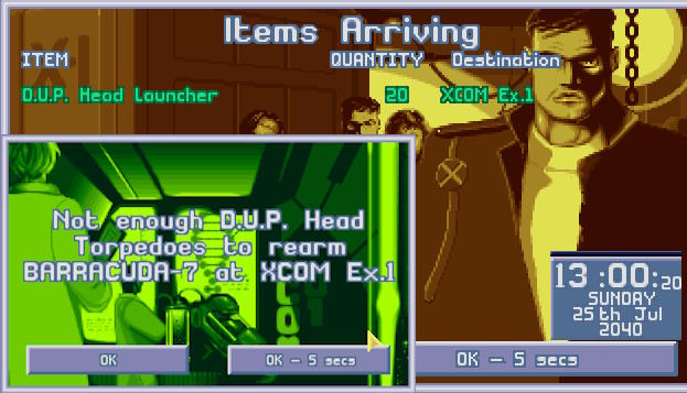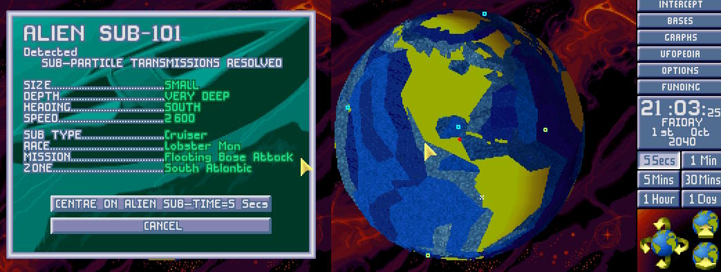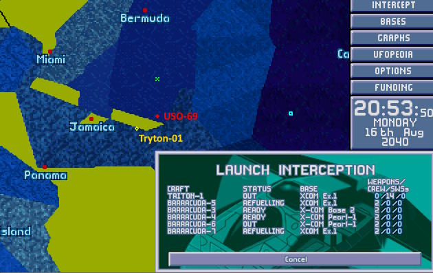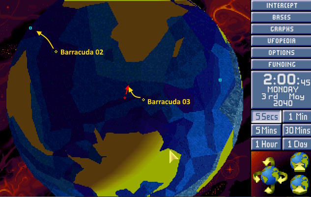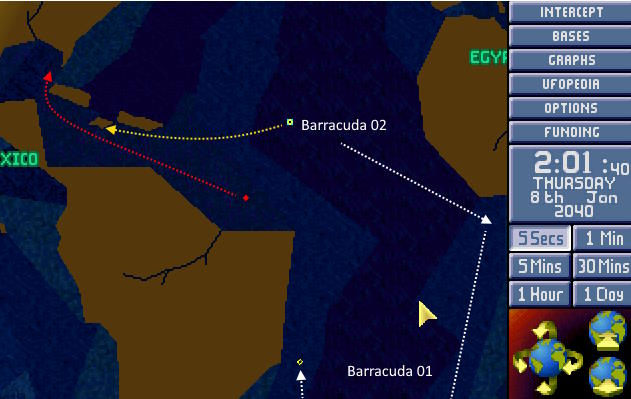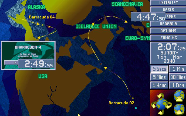 W bazie ogłoszono alarm. Na północnym Atlantyku pojawił się nowy USO. Ten był jednak znacznie większy od wcześniejszych. Komandor X-COM nakazał wysłać w pościg obie Barracudy z głównej bazy. 1:30