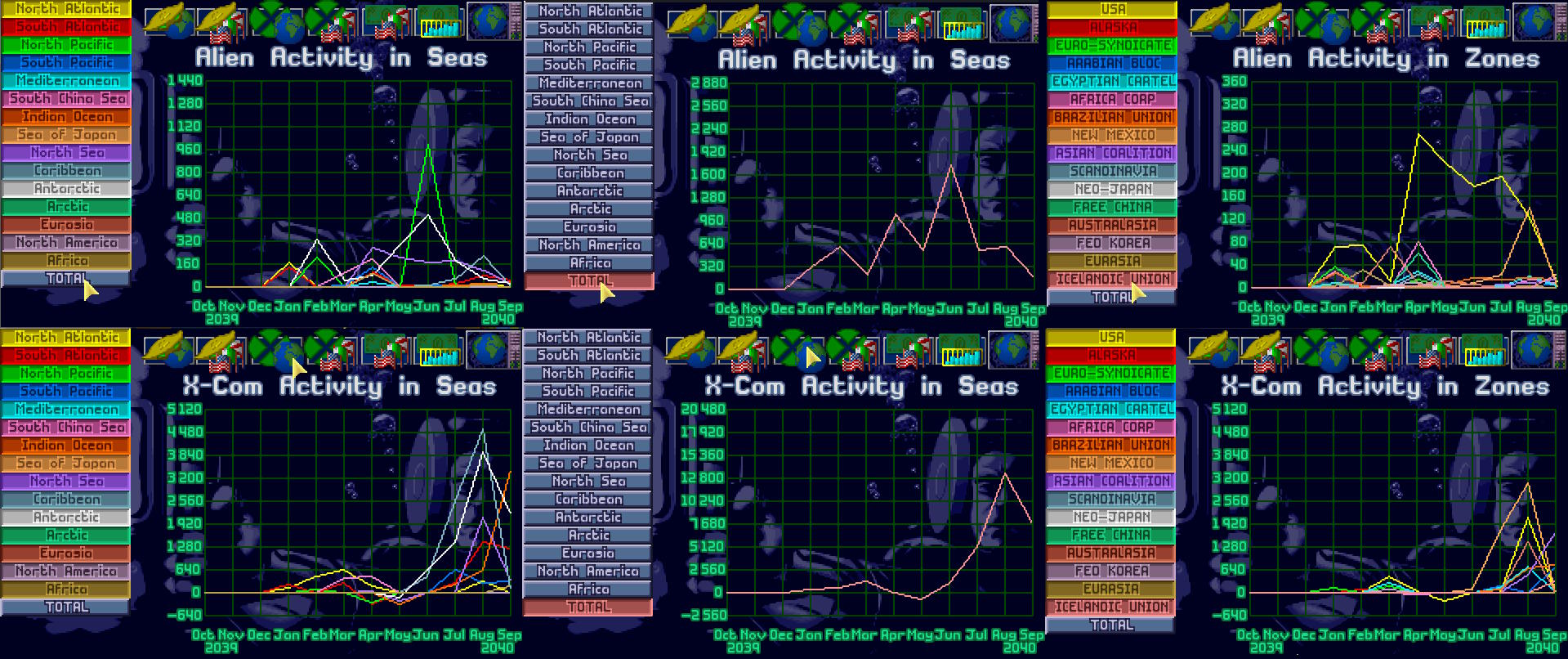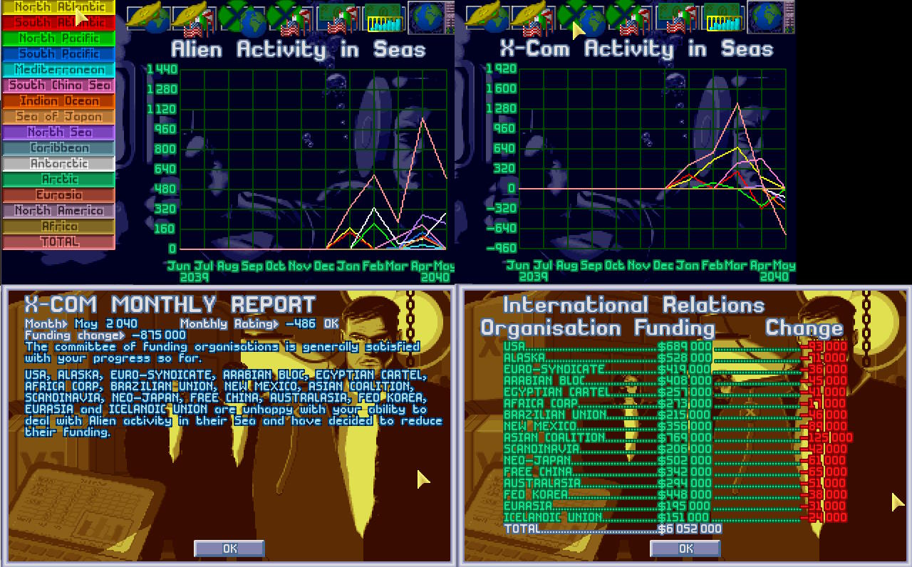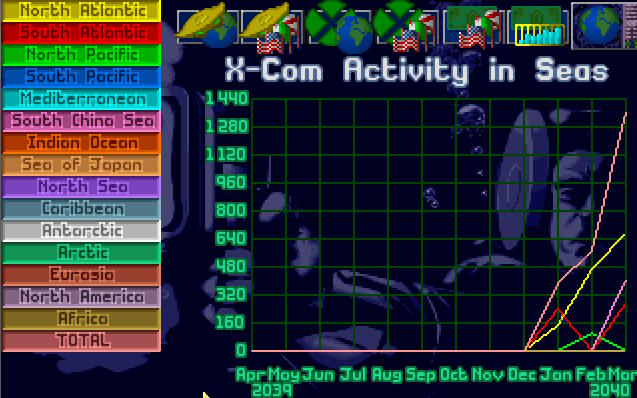 Na spotkaniu Komitetu Obrony Ziemii, admirał X-COM przedstawił raport dotyczący działalności X-COM oraz obcych. Obcy każdego miesiąca udawali się na inny akwen, jakby badali w którym miejscu mogą zadać cios. Jednak ich aktywność została ograniczona w marcu...