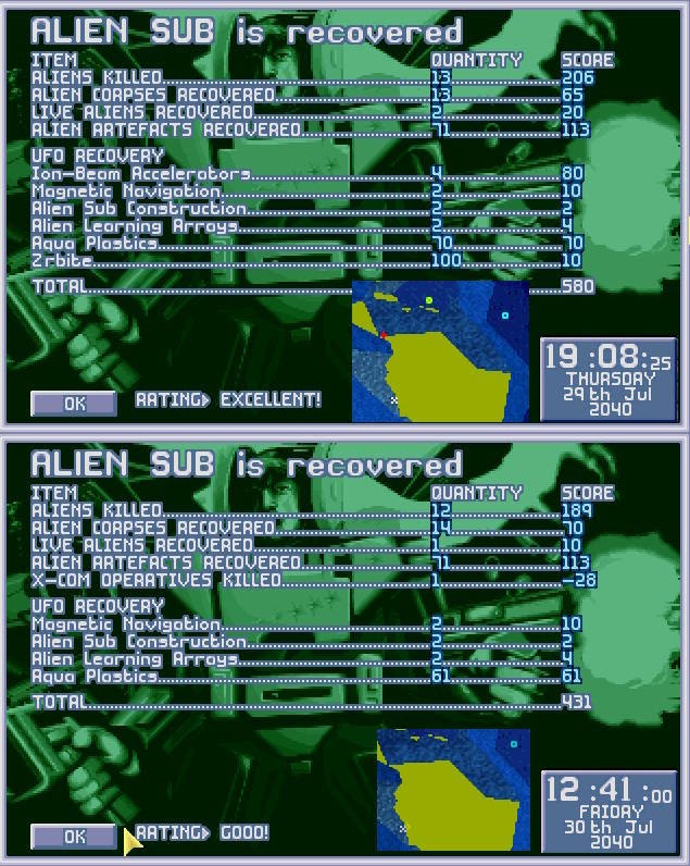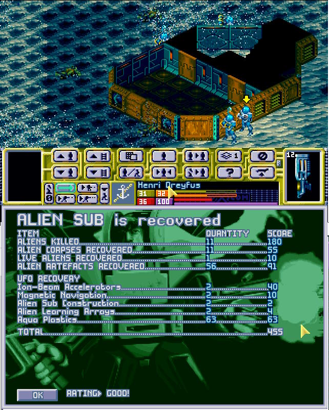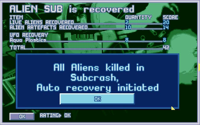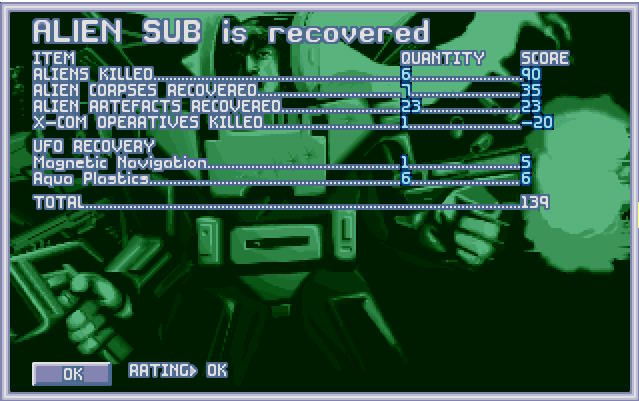 Obcy zażarcie bronili swojego wraku, ale X-COMowi udało się przełamać ich obronę. Niemniej ceną było życie dwóch kolejnych aquanautów