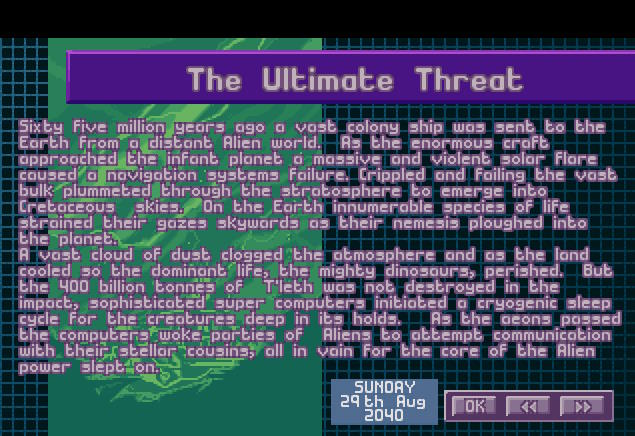 Bardziej ciekawy był jednak raport odnośnie planów obcych. Obcy próbują skontaktować się z przywódcami korporacji i organizacji, aby osiągnąć porozumienie i zaprzestanie działań bojowych i podzielenie się wiedzą o ich wyższej technologii w zamian za wycofanie z projektu X-COM. Po raz drugi X-COM stanął przed wielkim zagrożeniem... Ale fakt, że obcy uważają nas za zagrożenie było dobrą wiadomością.