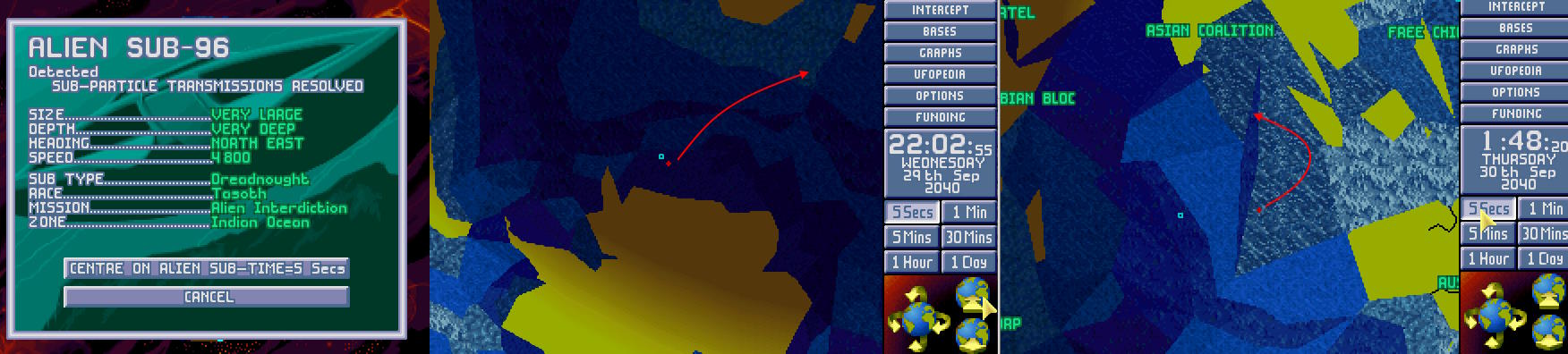 Po godzinie pościgu USO-10 zniknęło z sensorów w okolicy Morza Labradorskiego. Admirał X-COM (świeżo awansowany) polecił kontynuować pościg