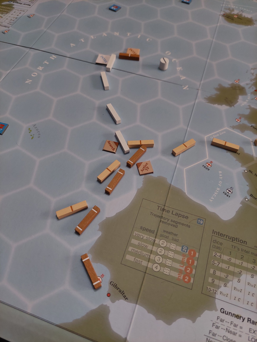 B-Dienst informuje o statkach płynących obok Hiszpanii a także o patrolu krążowników, który ma ich przejąć w Zatoce Biskajskiej. Musimy uderzyć natychmiast.