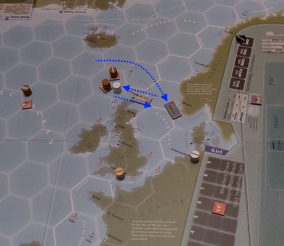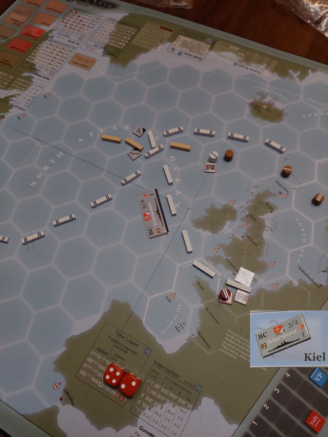 Druga wiadomość dotyczy pancerników wroga, które przebiły się przez kanał dwa dni temu i kierują się na Atlantyk. Dotarcie do konwoju HX przed wrogiem nabiera coraz większego priorytetu.