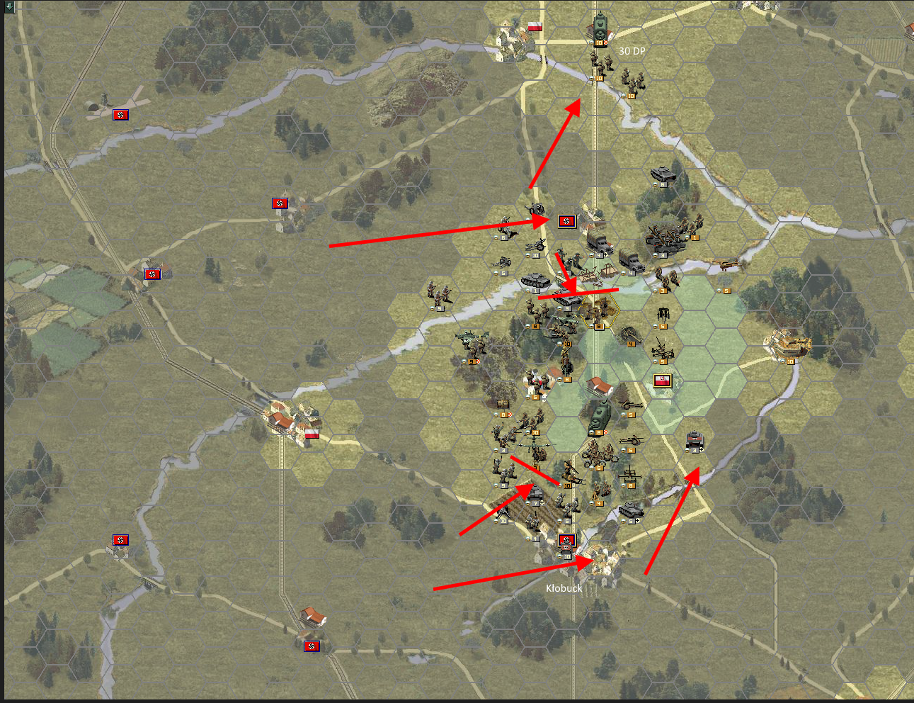Tu trzeba pytać autora kampanii, co przedstawił... Na razie sprawdziłem, że jakbym miał wyższy stopień wygranej (1 stopień wyżej, to utrzymanie linii kolejowej w jedną stronę, 2 stopień wyżej, to całkowicie), dostałbym więcej punktów na "rekwizycje"... Czyli growej waluty na zakup jednostek... Więc mógłbym np. podczas następnej bitwy mieć wsparcie dywizjonu Łosi i Jedenastek zapewnione (i nie tylko następnej, jakby przetrwali).