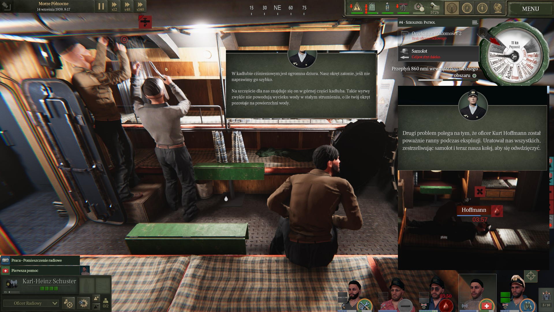 Jeszcze tego samego dnia wypłynęliśmy na pierwszy patrol. Ze względu na nieskończone szkolenie, na pokład przydzielono drugiego kapitana, który miał pomóc w w szybszym osiągnięciu gotowości bojowej [patrol z samouczka, dop. Finka]