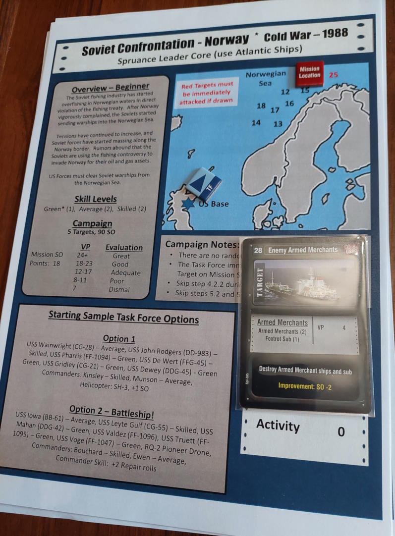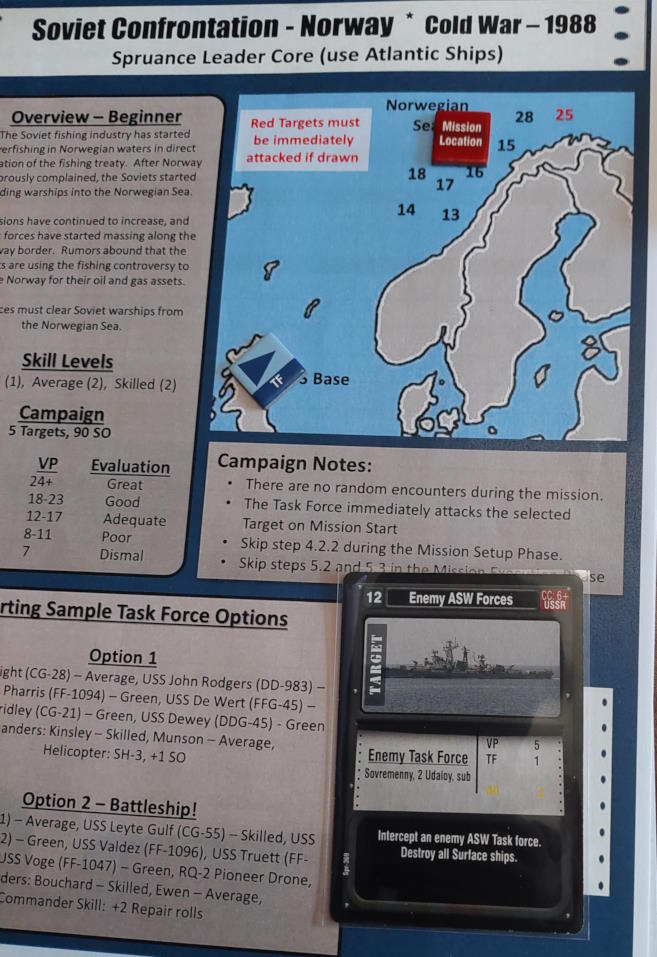 Napięcie między ZSRR, a Norwegią sięga zenitu. To, co początkowo uznawaliśmy za Wojny Dorszowe zaczyna się zaogniać. Czerwoni podnieśli w stan gotowości swoją flotę i pchają ją na Morze Norweskie. Naszym zadaniem jest utrzymanie Czerwonych z dala od Norwegii. Oczekujemy w Rosyth na rozkazy od CINCEASTLANT (admirała Lee Baggett Jr.)