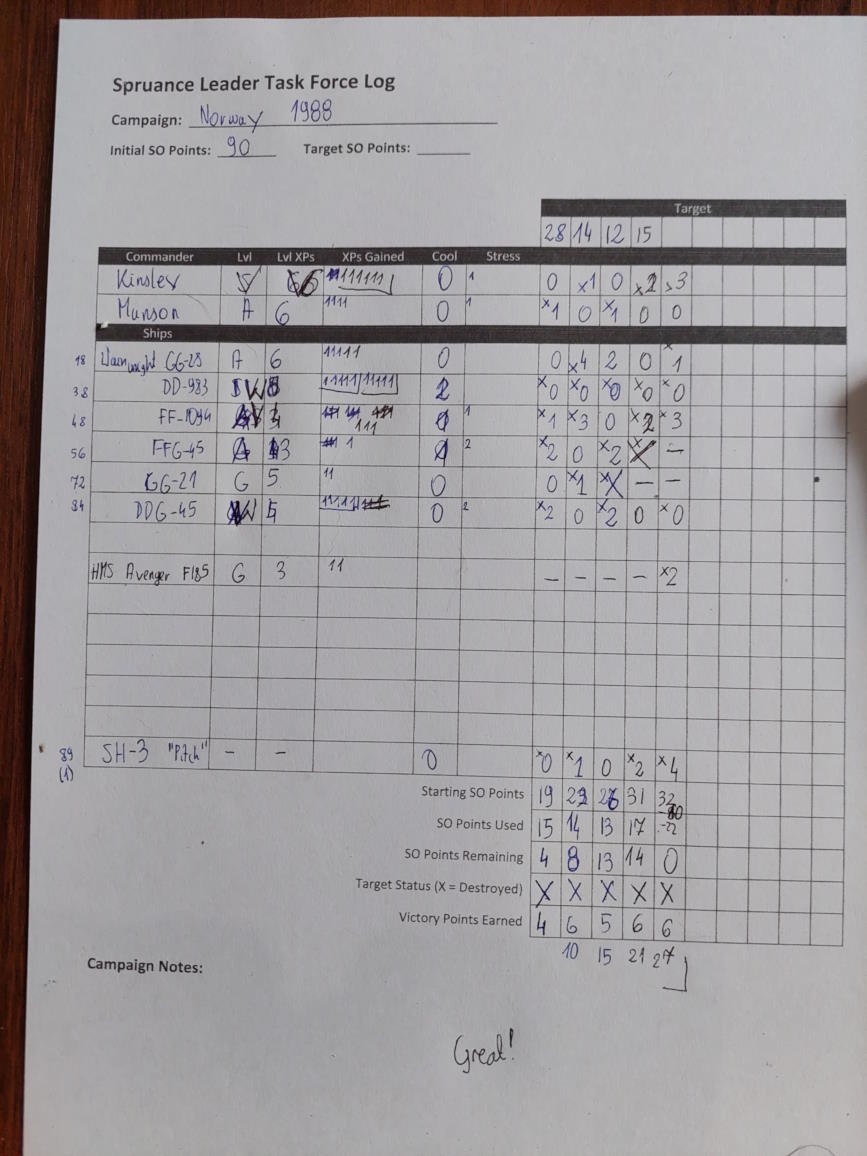 Ilość punktów w kampanii wystarcza do zwycięstwa. Ostatnia misja: 4 OP Rosyjskie na Morzu Norweskim. Zatopienie ich prowadzi do "zdecydowanego zwycięstwa"...